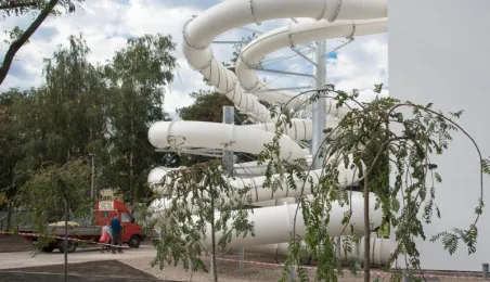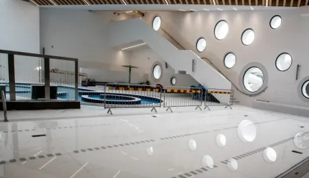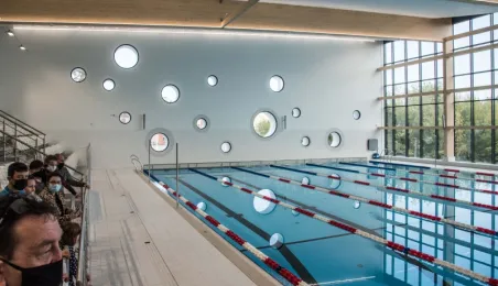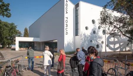 3 października 2020 r. torunianie zwiedzili nową miejską pływalnię przy ul. Bażyńskich. Obiekt zostanie otwarty pod koniec roku.