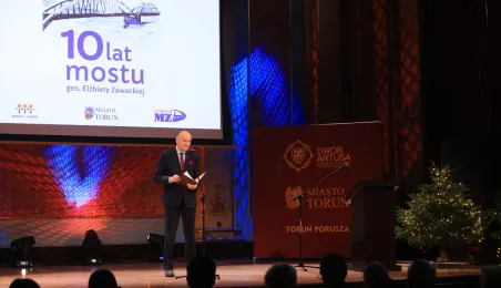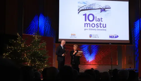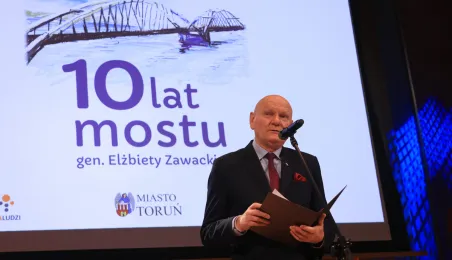 Dokładnie 9 grudnia 2013 r. pierwsze samochody przejechały nowym mostem drogowym przy ul. Wschodniej w Toruniu. - Most połączył dwa brzegi Wisły oraz dwa skupiska osiedli miejskich – prawobrzeże i lewobrzeże. Spełnił wieloletnie i wielopokoleniowe oczekiwania oraz potrzeby mieszkanek i mieszkańców Torunia – powiedział prezydent Torunia Michał Zaleski. Fot. Sławomir Kowalski