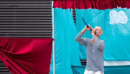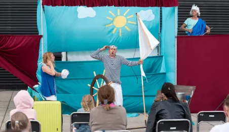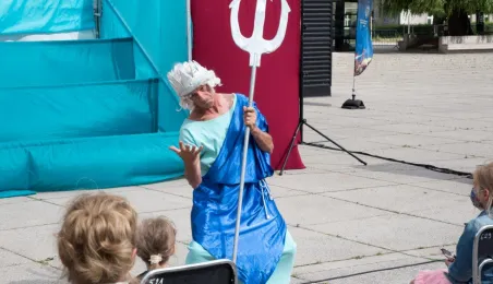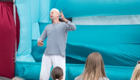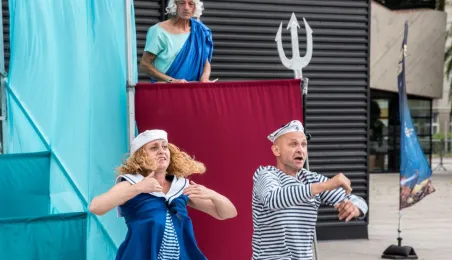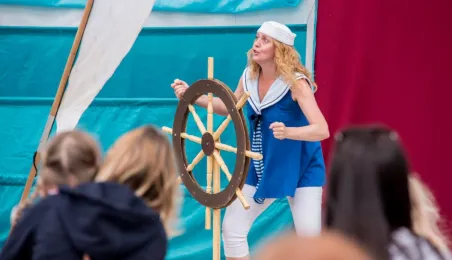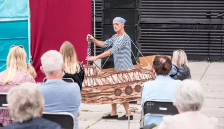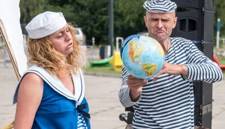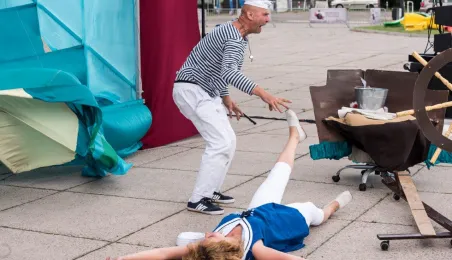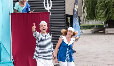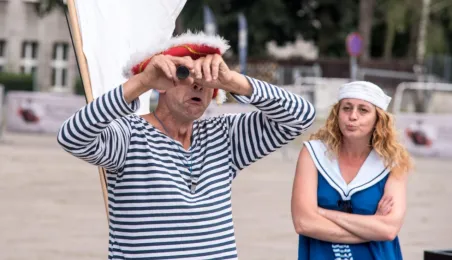 W dniu 12 lipca 2020 r. na placy przy scenie plenerowej przy CKK Jordanki pokazany został spektakl Teatru Łata pt. "Morskie Opowieści". Spektakl zaprezentowany został w ramach 6. Festiwalu Teatrów Ulicznych. Fot. Lech Kamiński
