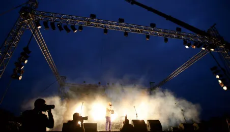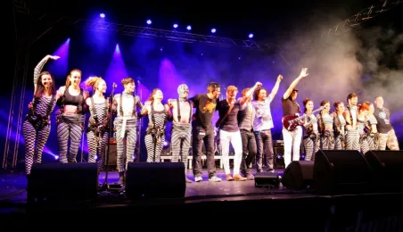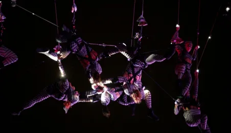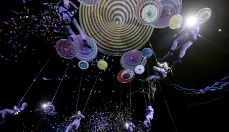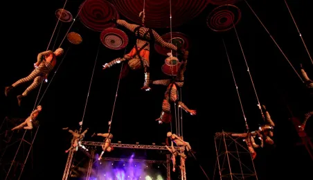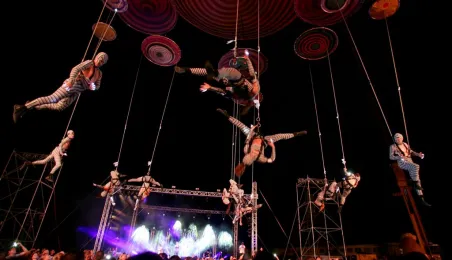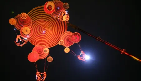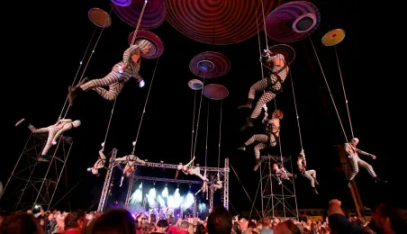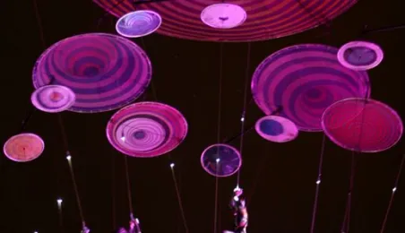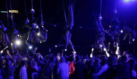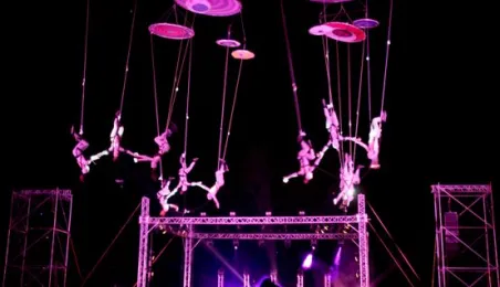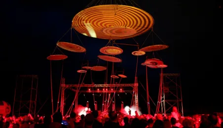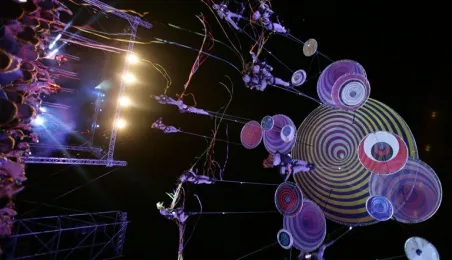 Podczas tegorocznej edycji Festiwalu Teatrów Ulicznych 22 lipca 2016 r. zaprezentowali się w Toruniu artyści z teatru Muaré i zespołu Duchamp Pilot. Spektakl „Muaré Experience” w ich wykonaniu, będący połączeniem rockowego koncertu i pokazu taneczno-akrobatycznego nad głowami publiczności w magicznej scenerii geometrycznych wzorów, został entuzjastycznie przyjęty przez widzów. Fot. Adam Zakrzewski
