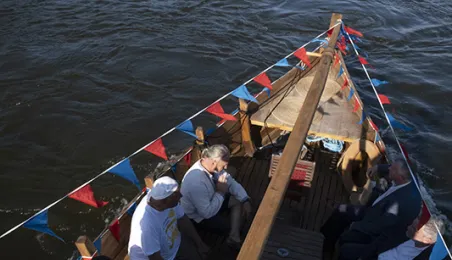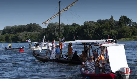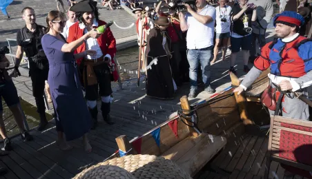 Piata edycja Festiwalu Wisły zainaugurowana została w Toruniu w dniu 14 sierpnia 2021 r. Na mieszkańcow i turystów czekała masa atrakcji, m.in. jarmark Nadwiślańskie Smaki czy pokaz łodzi płynących Wisłą. Fot. Wojtek Szabelski