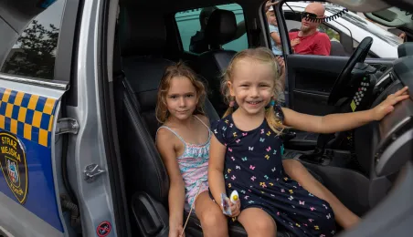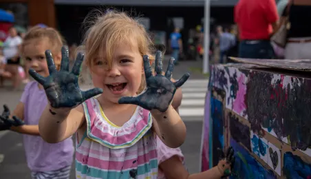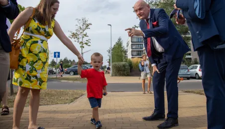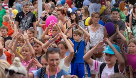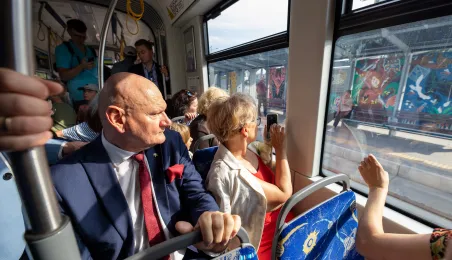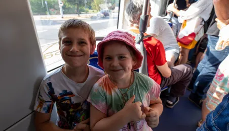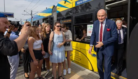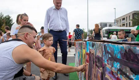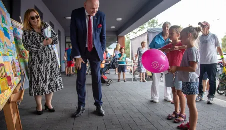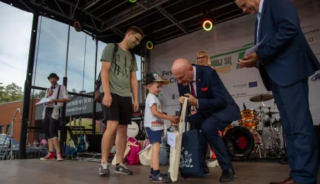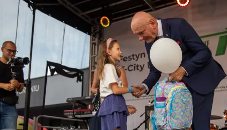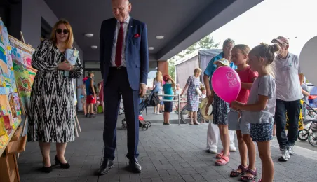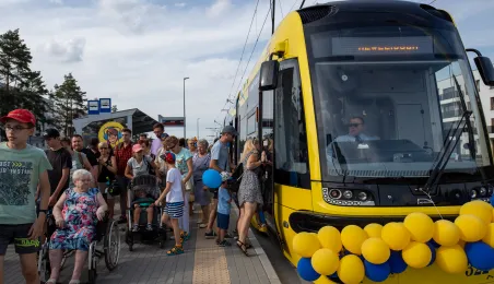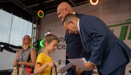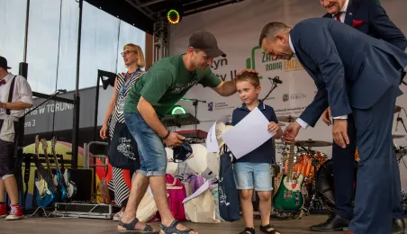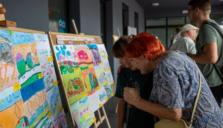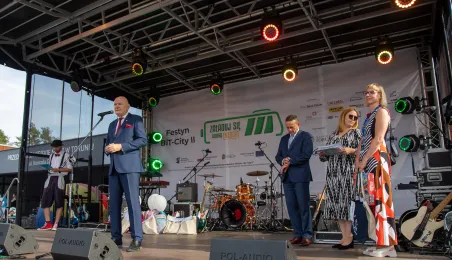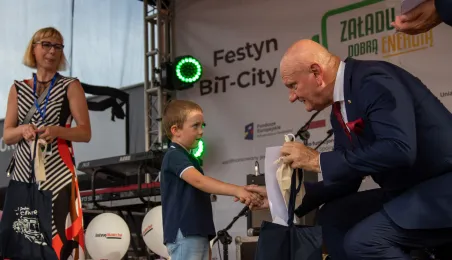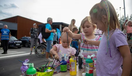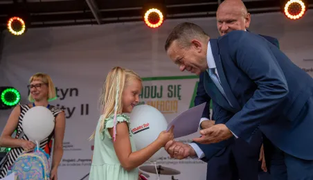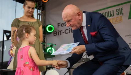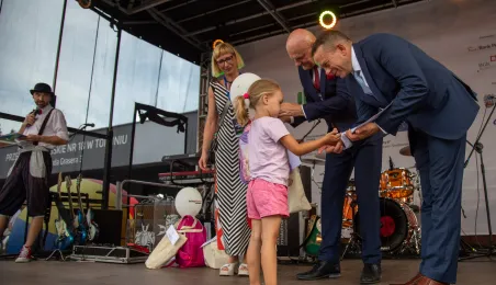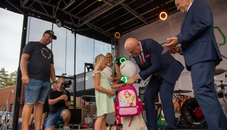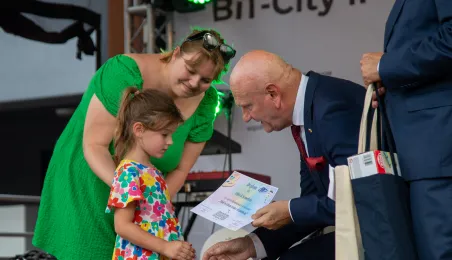 25 sierpnia 2023 r. mieszkańcy Torunia udali się nową linią tramwajową na osiedle w północnej części miasta, gdzie odbył się festyn pn. BiT City - na zakończenie inwestycji. Jednym z punktów programu było wręczenie nagród dzieciom, które zostały wyróżnione w konkursie plastycznym. Fot. Agnieszka Bielecka