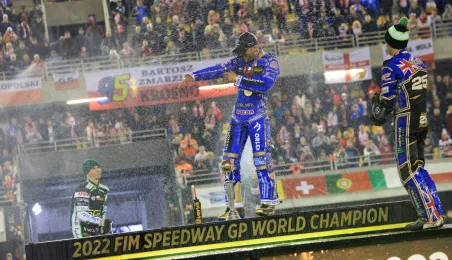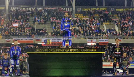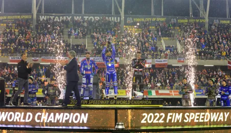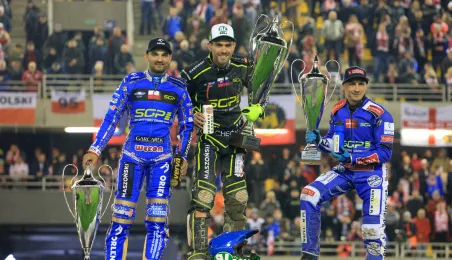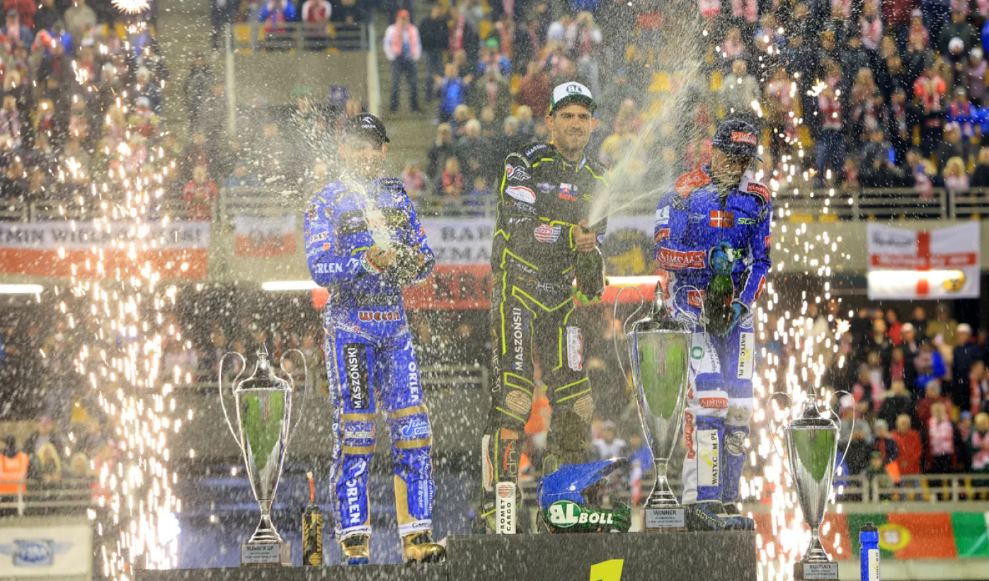 Bartosz Zmarzlik mistrzem świata, Leon Madsen wicemistrzem, a Maciej Janowski brązowym medalistą w Toruniu! Wrocławianin w ostatnim turnieju FIM Speedway Grand Prix na Motoarenie sięgnął po pierwszy krążek IMŚ w karierze. Fot. Sławomir Kowalski
