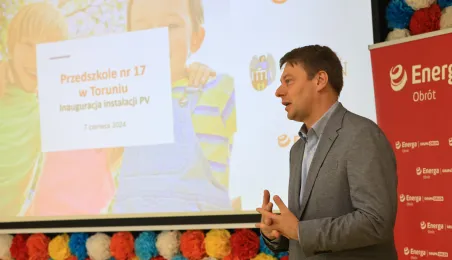 Na dachu Przedszkola Miejskiego nr 17 pojawiły się panele fotowoltaiczne. To efekt współpracy Gminy Miasta Toruń ze spółką Energa Obrót. W wyniku wspólnych działań 7 czerwca 2024 r. oficjalnie przekazano do użytkowania gotową instalację ba budynku przedszkola. W wydarzeniu udział wzięli przedstawiciele Ministerstwa Klimatu i Środowiska oraz samorządu, a także społeczności Przedszkola Miejskiego nr 17, a także Energi Obrót i firmy Corab SA, która dostarczyła system fotowoltaiczny. Nieprzypadkowo spotkanie przypadło w Dniu Przyjaciela, symbolicznie nawiązując do starań i zaangażowania wszystkich stron inicjatywy na rzecz lokalnych społeczności. Z tej okazji dla uczestników wydarzenia wystąpiły przedszkolaki. Fot. Sławomir Kowalski