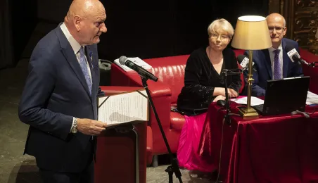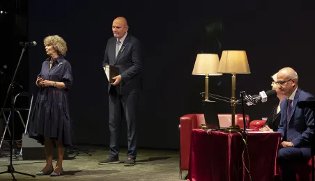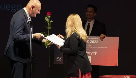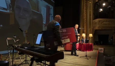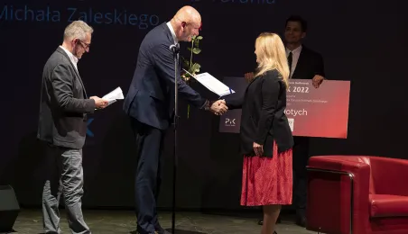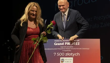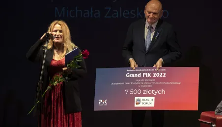Po raz 14. przyznane zostały nagrody w Konkursie Artystycznych Form Radiowych „Grand PiK 2022”. Ich wręczenie odbyło się 9 czerwca 2022 r. w Teatrze im. Wilama Horzycy.Jedną z nagród specjalnych ufundował i wręczył prezydent Michał Zaleski. Fot. Wojtek Szabelski