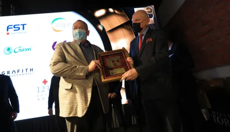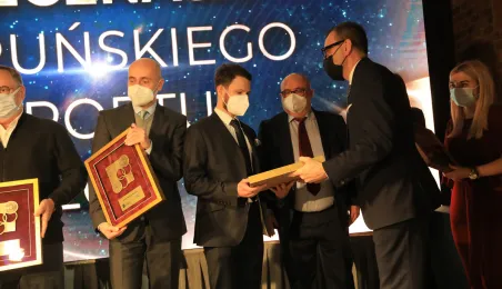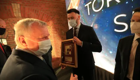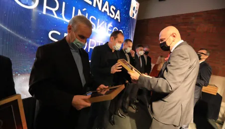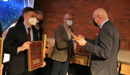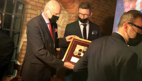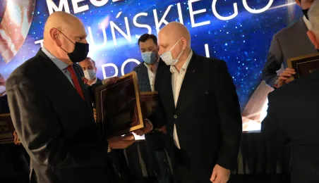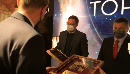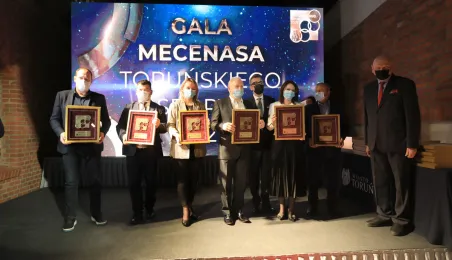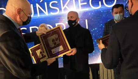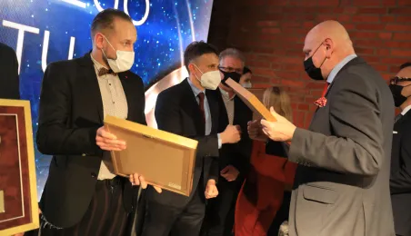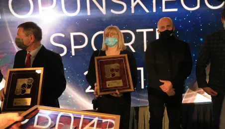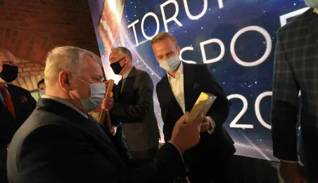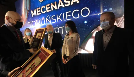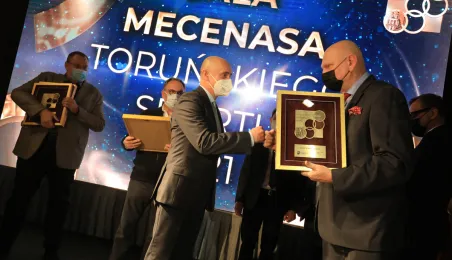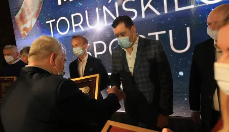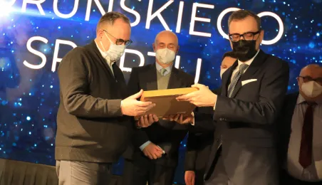 VIII Gala Mecenasa Toruńskiego Sportu odbyła się w piątkowy wieczór 14 stycznia 2022 r. w MCSM. Z rąk prezydenta Torunia Michała Zaleskiego i przewodniczącego Rady Miasta Torunia Marcina Czyżniewskiego pamiątkowe medale otrzymało 78 laureatów - osoby i firmy, które w szczególny sposób angażują swoje środki finansowe oraz udzielają bezinteresownej pomocy zawodnikom toruńskich klubów sportowych. Fot. Sławomir Kowalski