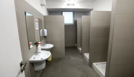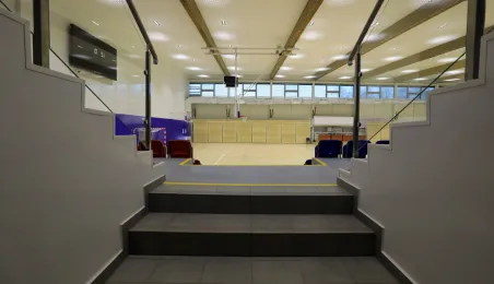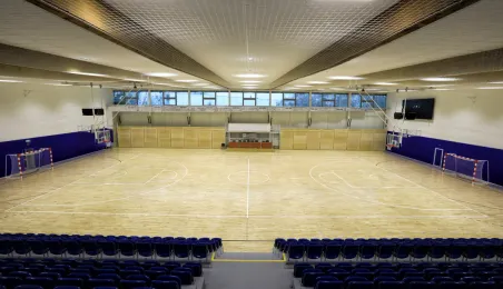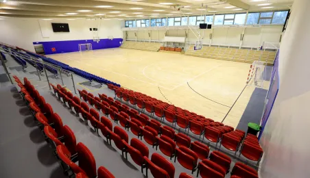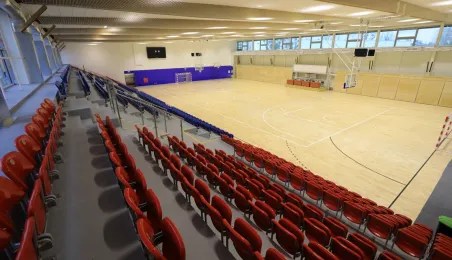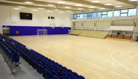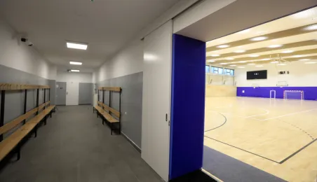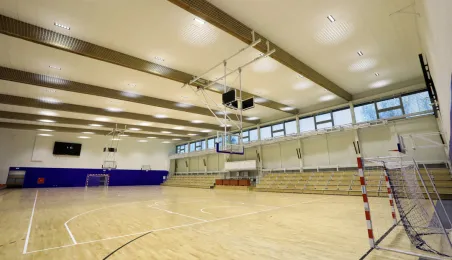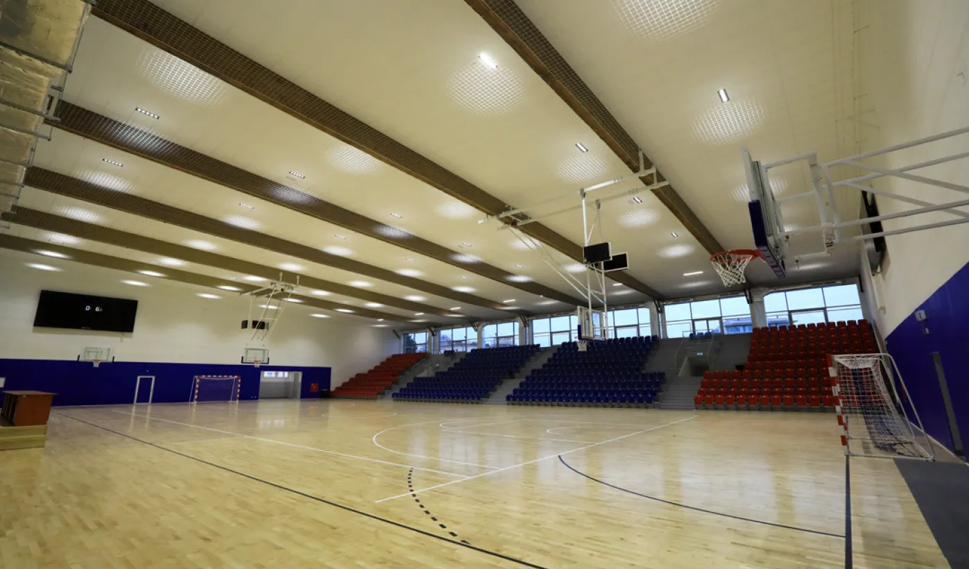 Hala sportowa w Zespole Szkół Przemysłu Spożywczego i VIII LO przy ul. Grunwaldzkiej 33/35 w Toruniu jest już gotowa. Od kwietnia do listopada 2020 r. trwał remont obiektu, w którym m.in. nastąpiła wymiana podłogi sportowej, remont trybun, prace malarskie, wymiana sufitu podwieszanego, a także remont zaplecza. Fot. Sławomir Kowalski