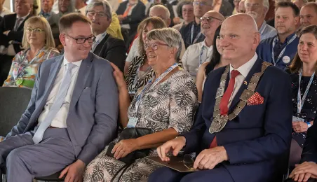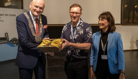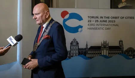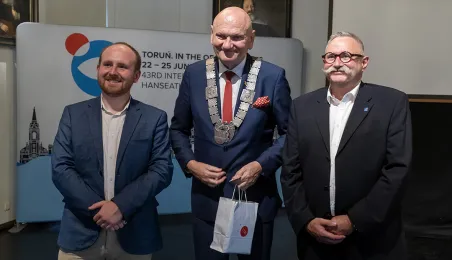W ramach 43. Międzynarodowego zjazdu Miast Nowej Hanzy do Torunia przybyli goście z 11 krajów. Uroczyste powitanie odbyło 22 czerwca 2023 r. się w Ratuszu Staromiejskim.