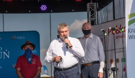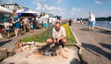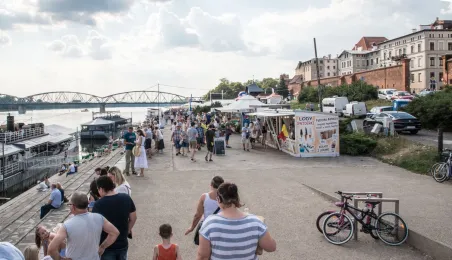 W weekend 15 i 16 sierpnia 2020 r. w Toruniu odbywa się Festiwal Wisły. Królową polskich rzek opanowały tradycyjne łodzie i statki, na Bulwarze Filadelfijskim trwa jarmark produktów regionalnych, a przy Zamku Dybowskim piknik. Oficjalne otwarcie wydarzenia odbyło się w sobotę na Scenie Letniej na Wiśle. Fot. Lech Kamiński