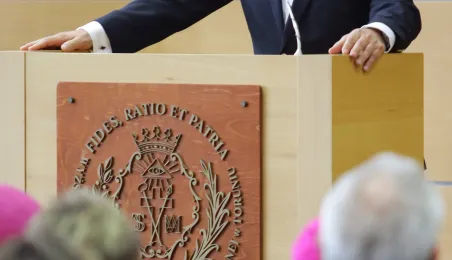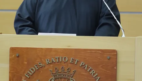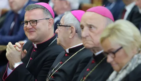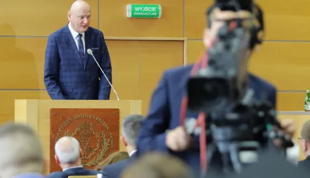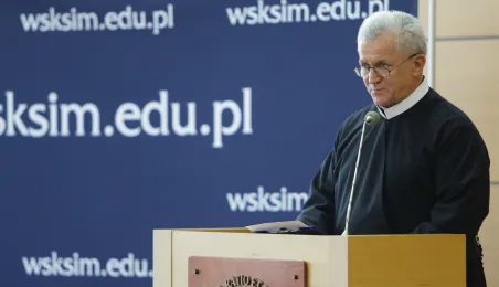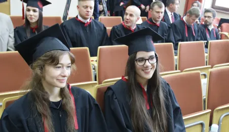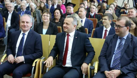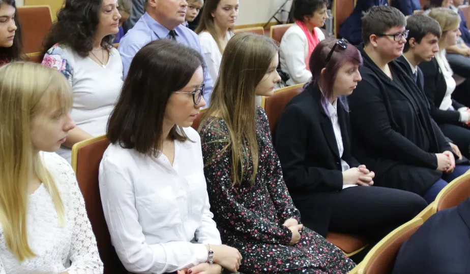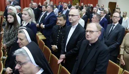 Wyższa Szkoła Kultury Społecznej i Medialnej w Toruniu 19 października 2019 r. zainaugurowała rok akademicki 2019/2020. Uroczystość z udziałem studentów, przedstawicieli rządu, samorządu i duchowieństwa odbyła się w auli szkoły przy ul. Starotoruńskiej 3. Fot. Adam Zakrzewski