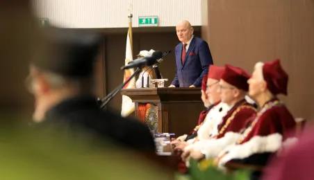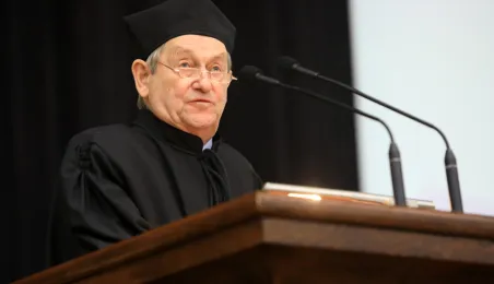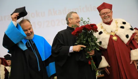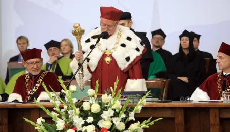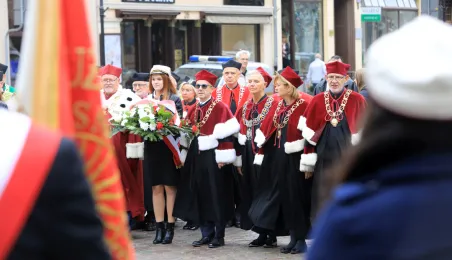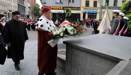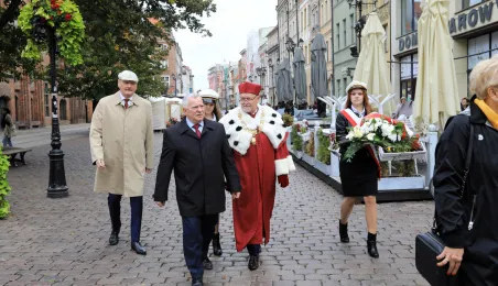 W dniu 1 października 2019 roku odbyła się uroczysta inauguracja roku akademickiego 2019/2020 na Uniwersytecie Mikołaja Kopernika, poprzedzona złożeniem kwiatów pod pomnikiem patrona. Podczas uroczystości tytuł honoris causa UMK otrzymał prof. Norman Davies. Fot. Sławomir Kowalski