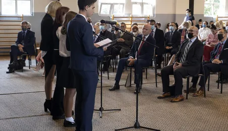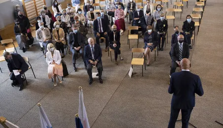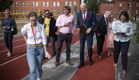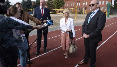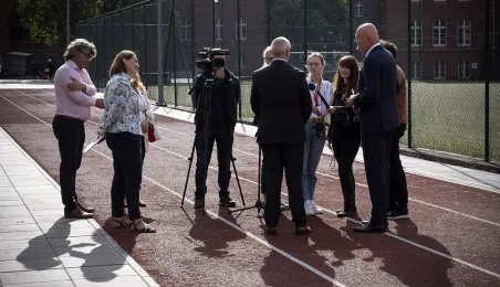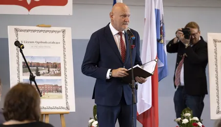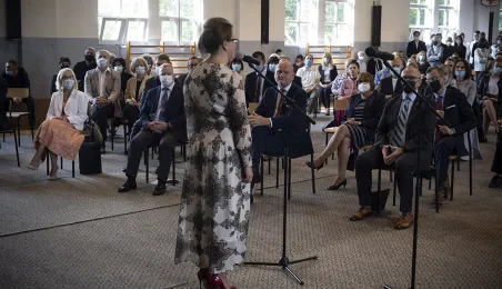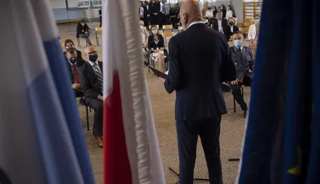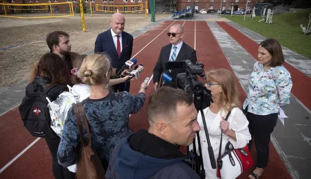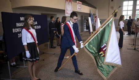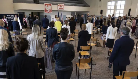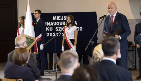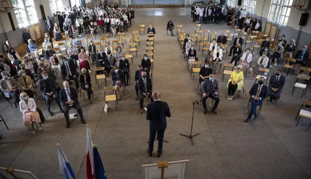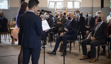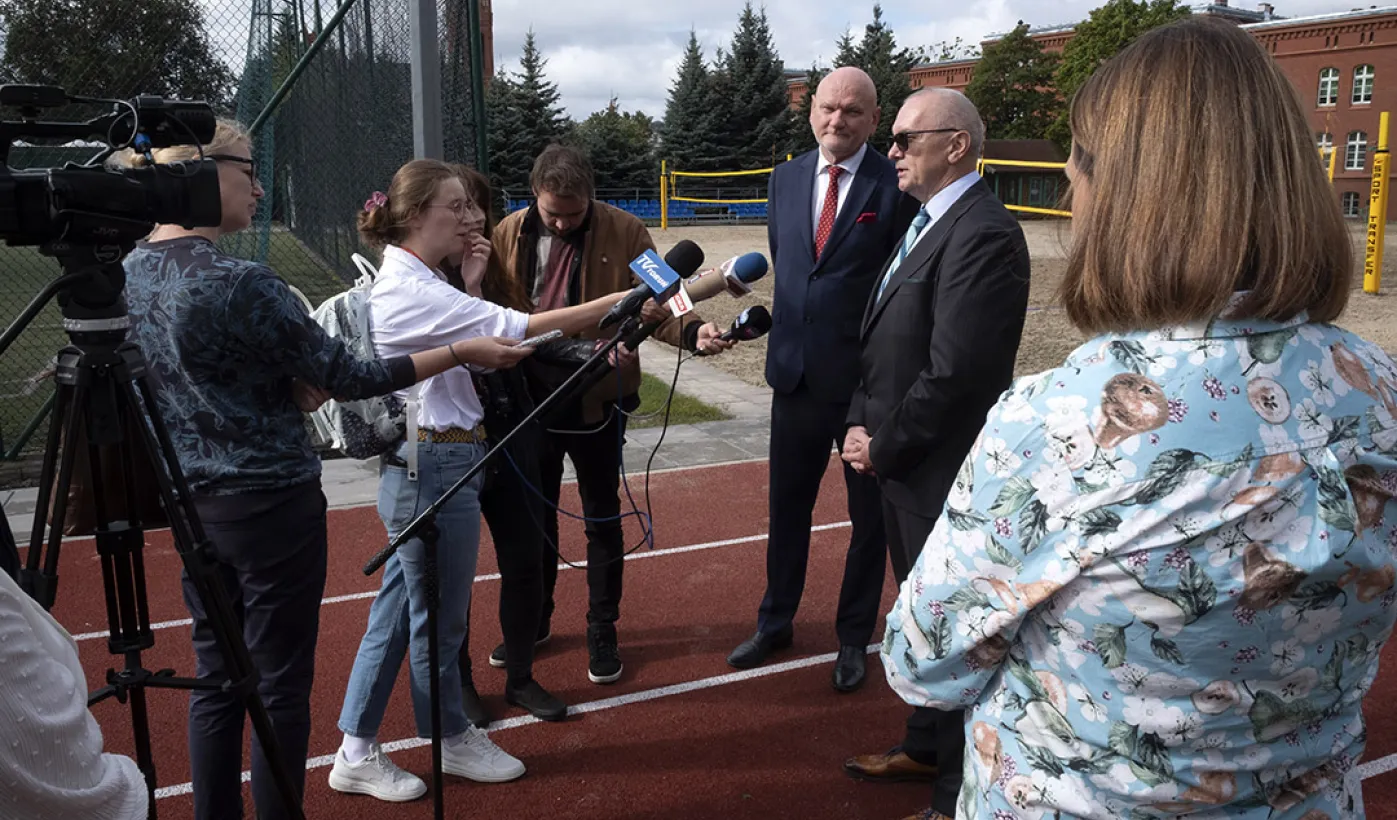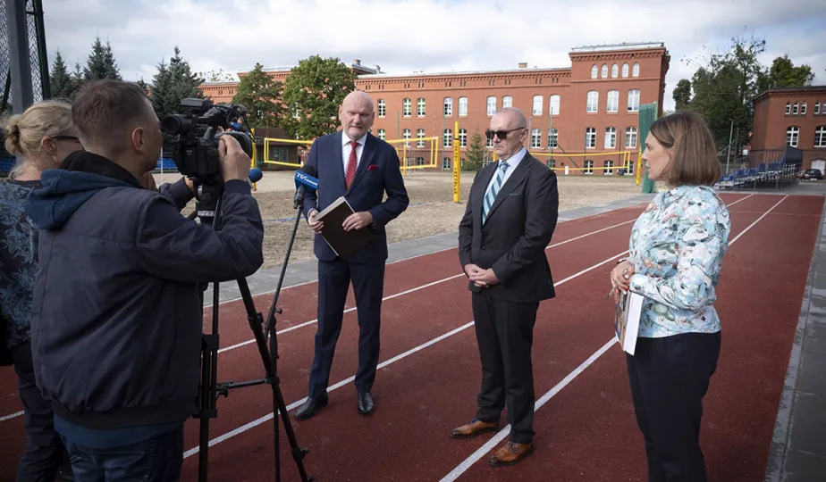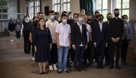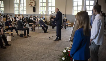 1 września 2021 r. w X Liceum Ogólnokształcącym im. prof. Stefana Banacha odbyła się miejska inauguracja roku szkolnego 2021/2022. Uroczystość poprzedził briefing prasowy prezydenta Michała Zaleskiego dotyczący stanu przygotowania szkół do nowego roku szkolnego. Fot. Wojtek Szabelski
