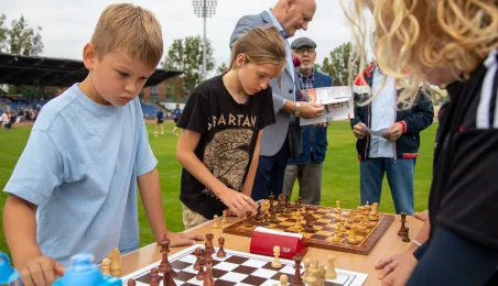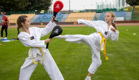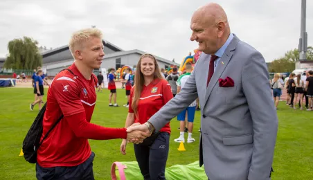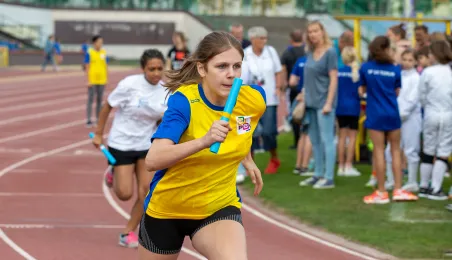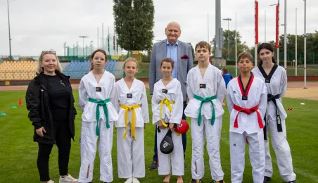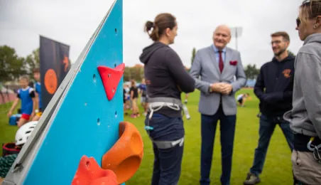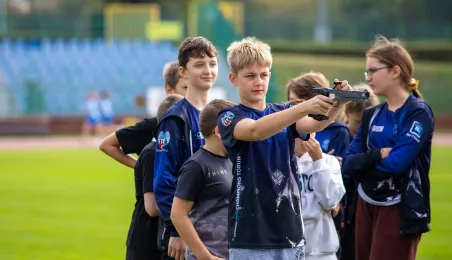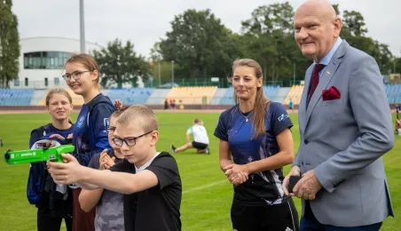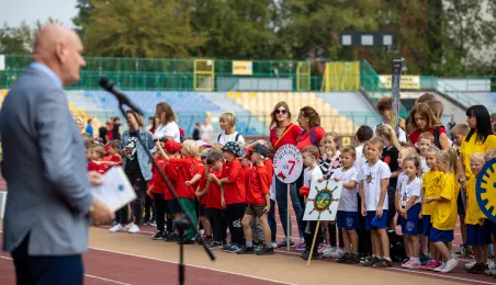 26 września na Stadionie Miejskim im. Grzegorza Duneckiego miała miejsce inauguracja Toruńskiej Olimpiady Przedszkoli i Szkół 2023/2024 połączona z piknikiem i pierwszymi zawodami lekkoatletycznymi. W inauguracji wziął udział prezydent Michał Zaleski. Fot. Agnieszka Bielecka