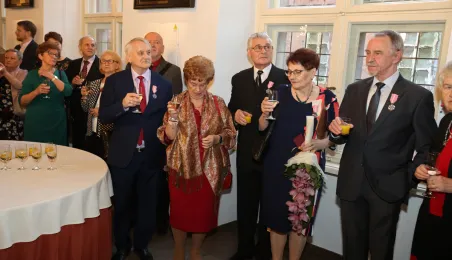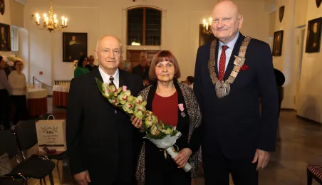 Dziewięć par małżeńskich odebrało Medale za Długoletnie Pożycie Małżeńskie. Odznaczenia wręczył prezydent Torunia Michał Zaleski na uroczystości w Ratuszu Staromiejskim. Zdj. Sławomir Kowalski