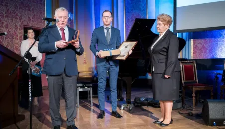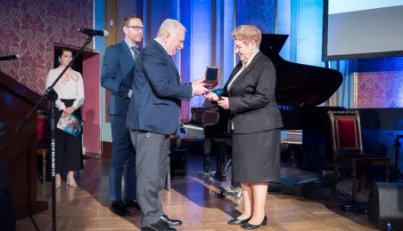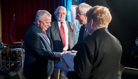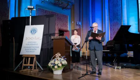 Oddział Toruński Stowarzyszenia Elektryków Polskich obchodzi 100-lecie istnienia. Z tej okazji podczas uroczystości jaka odbyła się w Dworze Artusa w dniu 5 listopada 2021 r., został wyróżniony medalem 100-lecia powrotu Torunia do wolnej Polski. Fot. Stowarzyszenie Elektryków Polskich