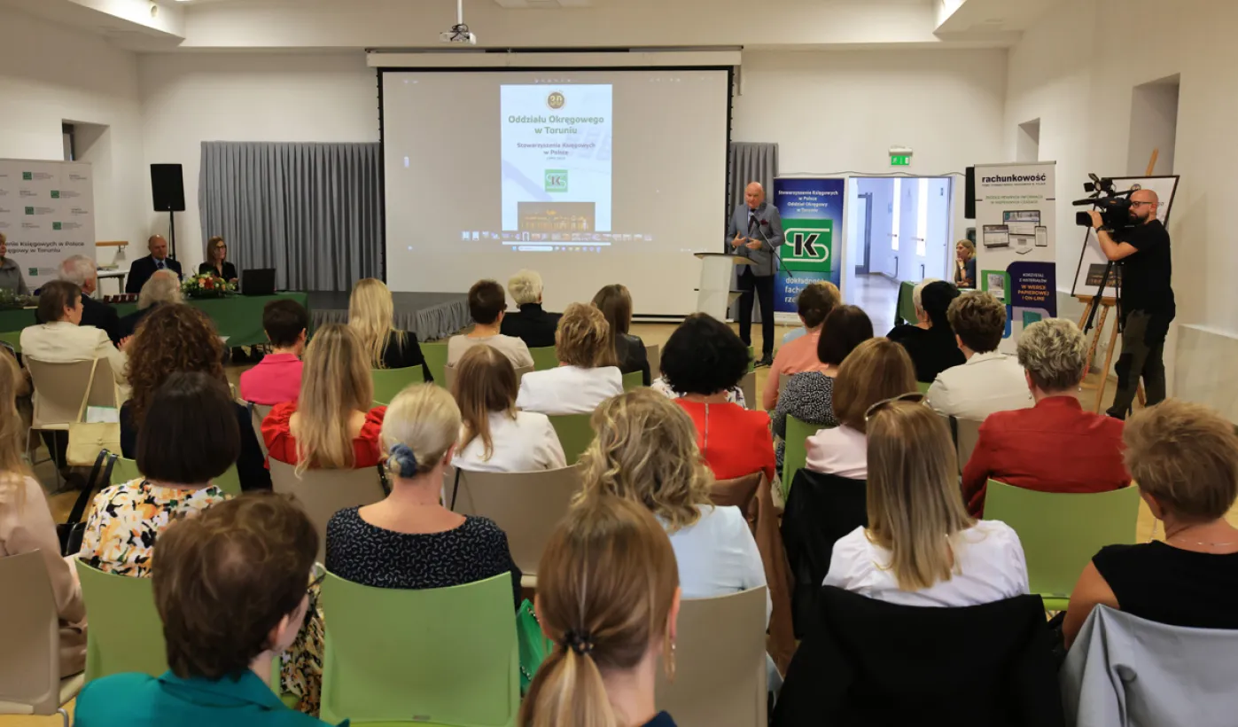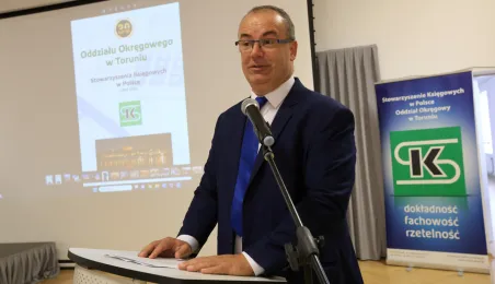 26 września 2023 r. w Międzynarodowym Centrum Spotkań Młodzieży odbył się Jubileusz 30-lecia Oddziału Okręgowego w Toruniu Stowarzyszenia Księgowych w Polsce. Zebranych przywitał prezydent Michał Zaleski. Fot. Sławomir Kowalski