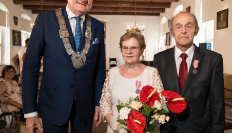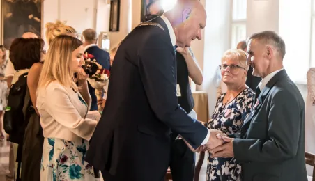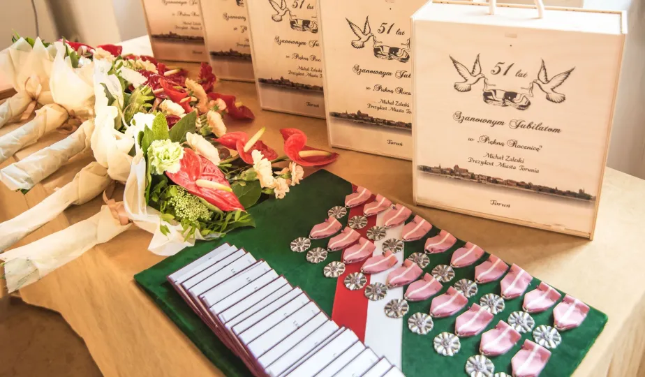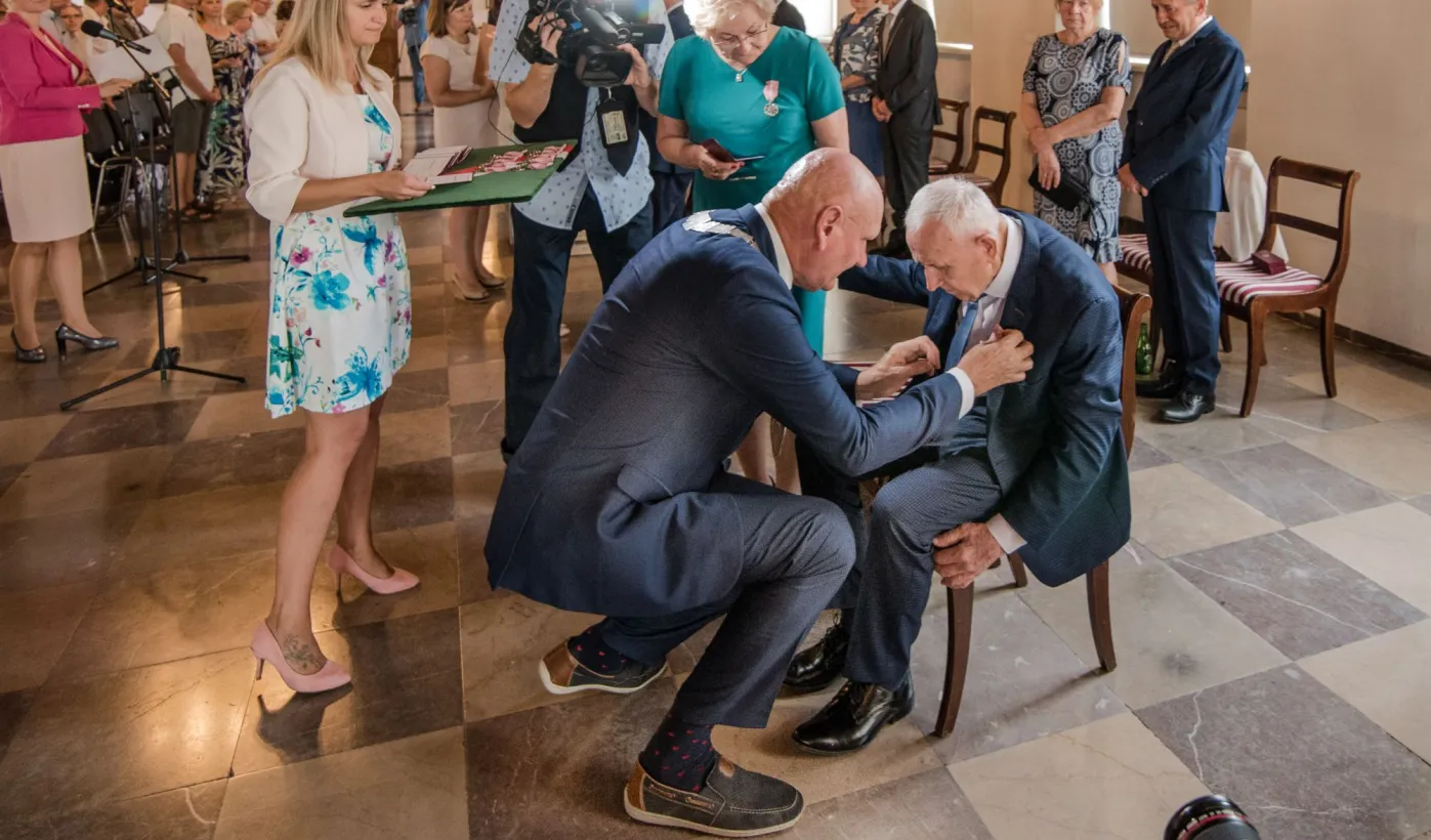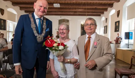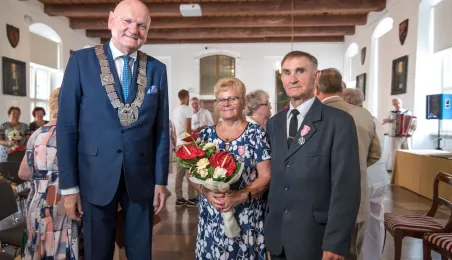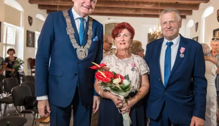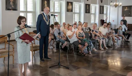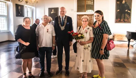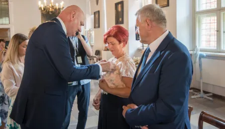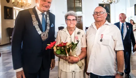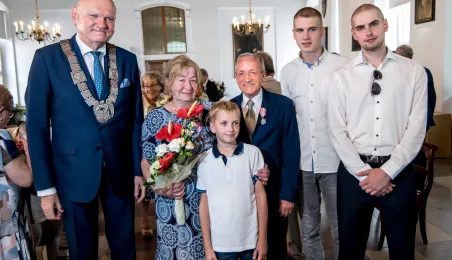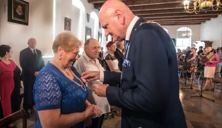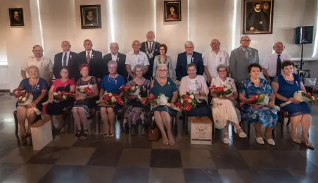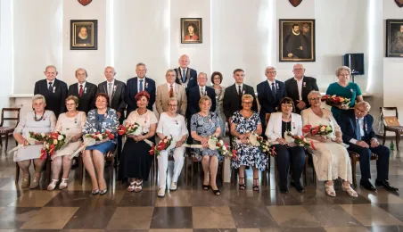 20 par małżeńskich odebrało 19 sierpnia 2022 r. Medale za Długoletnie Pożycie Małżeńskie. Odznaczenia wręczył prezydent Torunia podczas uroczystości w Ratuszu Staromiejskim. Ponieważ grupa małżonków oczekujących na wręczenie odznaczeń była duża, odbyły się dwie uroczystości – o godz. 14:00 i 15:30, obie w zabytkowej Sali Mieszczańskiej. Fot. Lech Kamiński