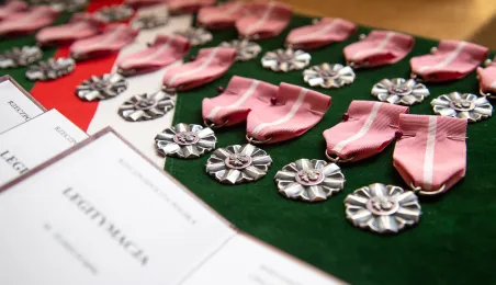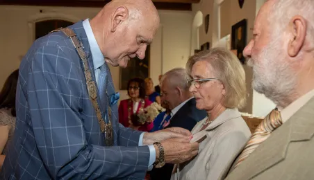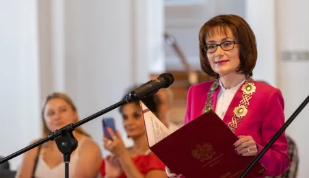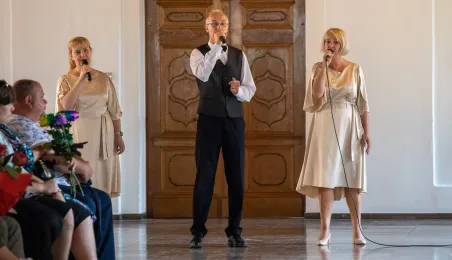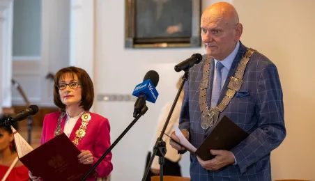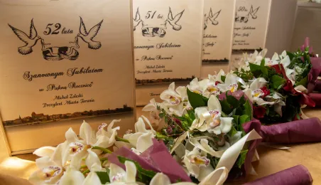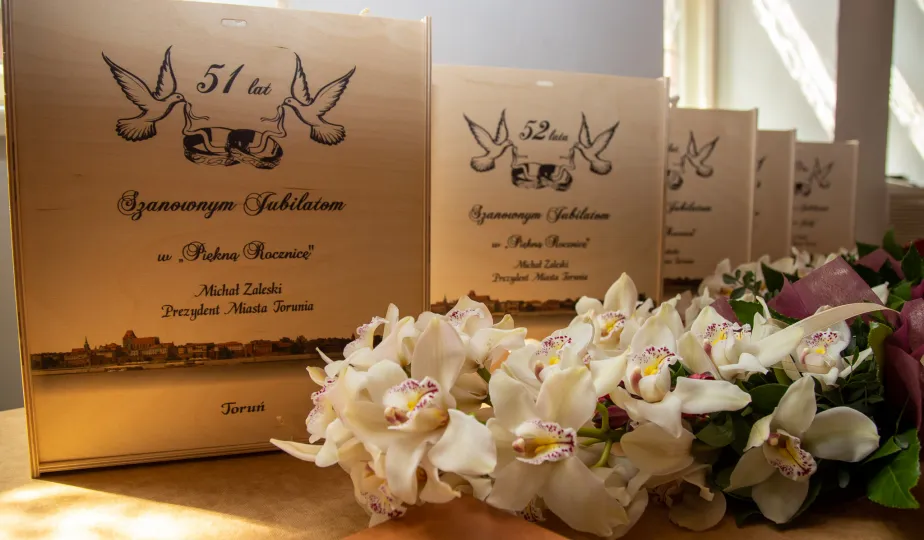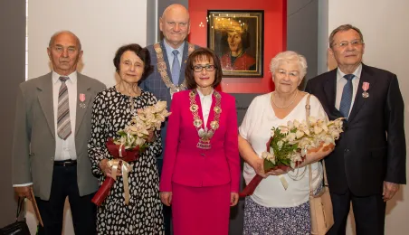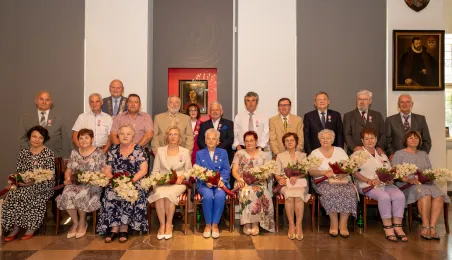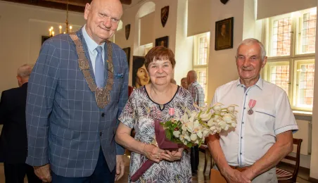 20 czerwca 2023 r. w Ratuszu Staromiejskim prezydent Michał Zaleski wręczył medale za długoletnie pożycie małżeńskie 10 parom torunian. Fot. Agnieszka Bielecka