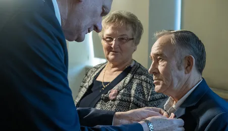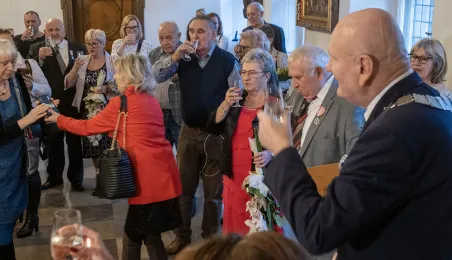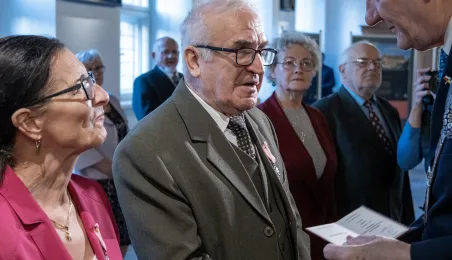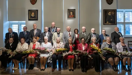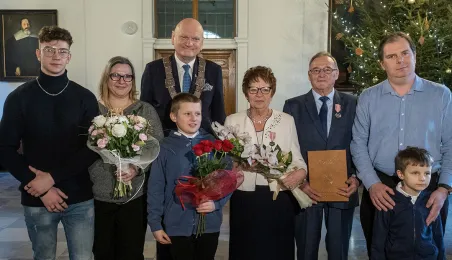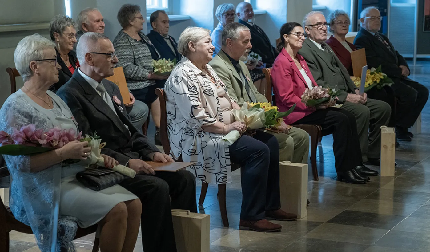 W przedostatnim dniu roku 30 grudnia 2022 r. 10 par małżeńskich odebrało z rąk prezydenta Torunia Michała Zaleskiego medale za długoletnie pożycie małżeńskie. Uroczystość odbyła się w Ratuszu Staromiejskim. Fot. Wojtek Szabelski