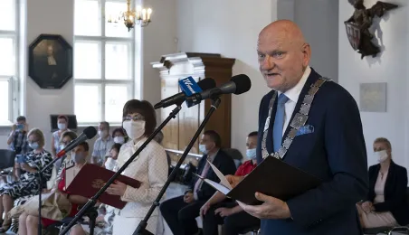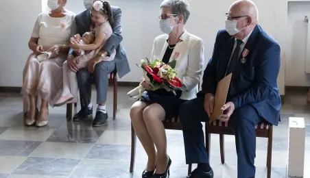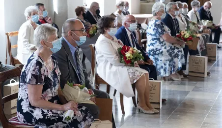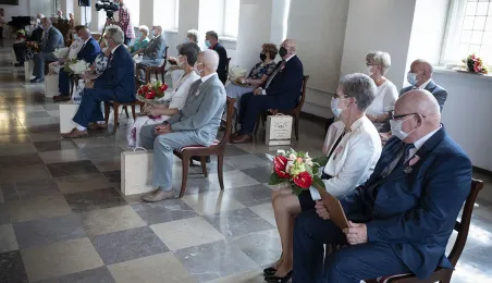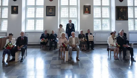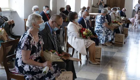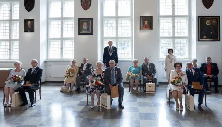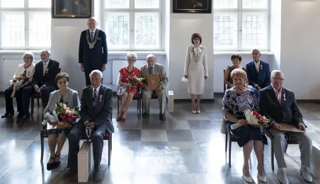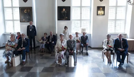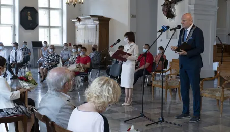 21 par małżeńskich odebrało Medale za Długoletnie Pożycie Małżeńskie. Odznaczenia wręczył prezydent Torunia Michał Zaleski podczas uroczystości w Ratuszu Staromiejskim w dniu 3 sierpnia 2021 r. Fot. Wojtek Szabelski