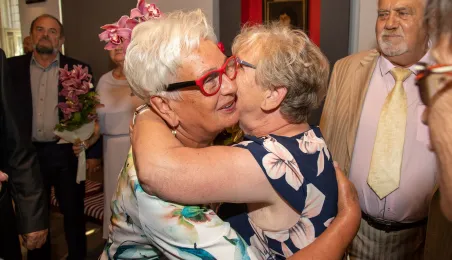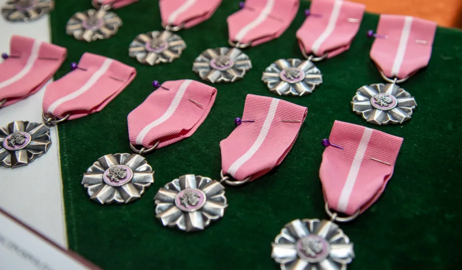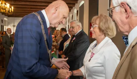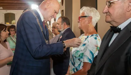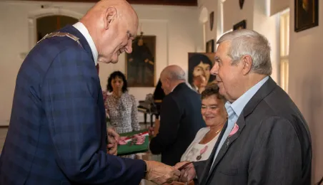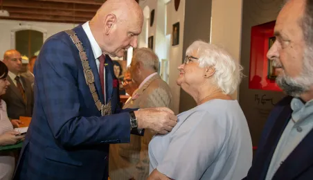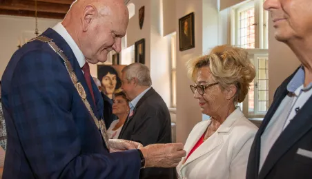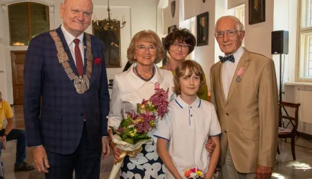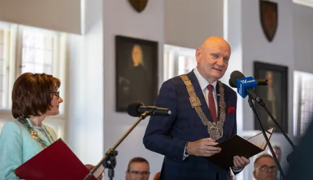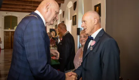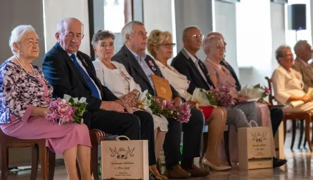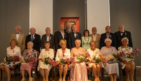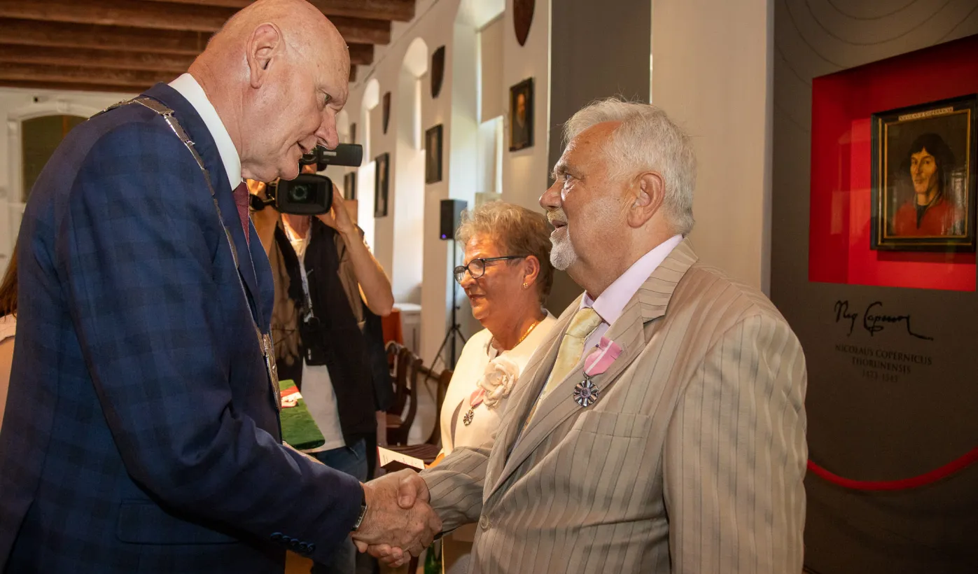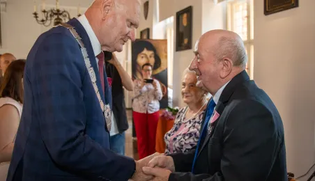 W Ratuszu Staromiejskim w Toruniu 18 toruńskich par odebrało 7 lipca 2023 r. Medale za Długoletnie Pożycie Małżeńskie.W pierwszej turze uroczystości prezydent Michał Zaleski wręczył medale ośmiu parom. Fot. Agnieszka Bielecka