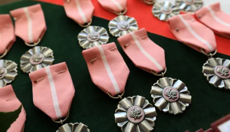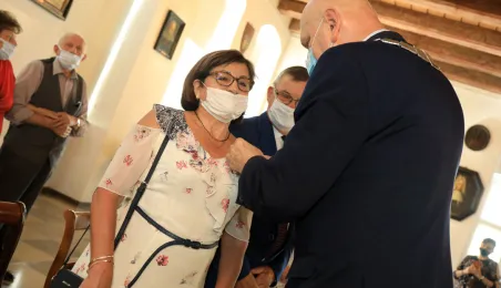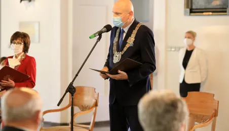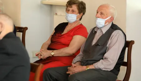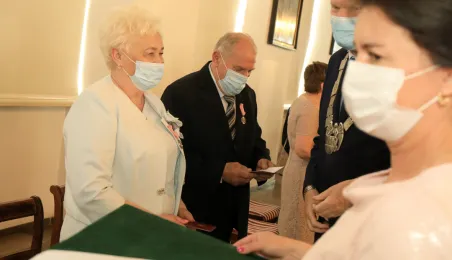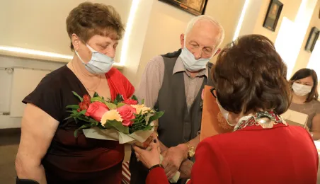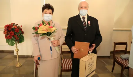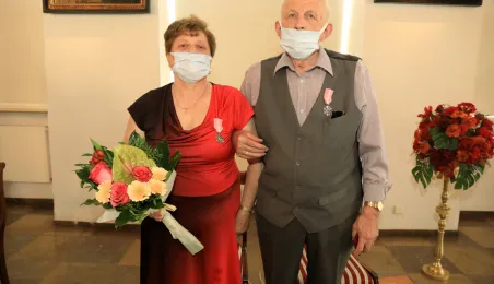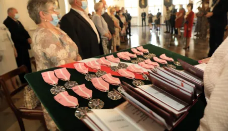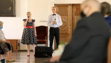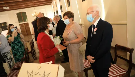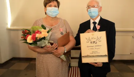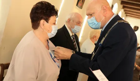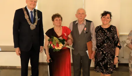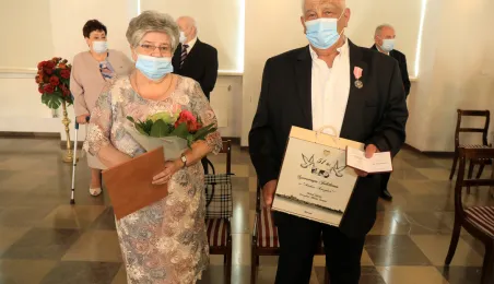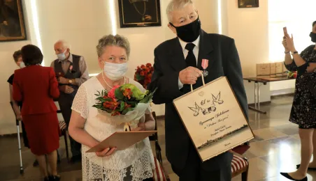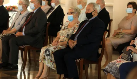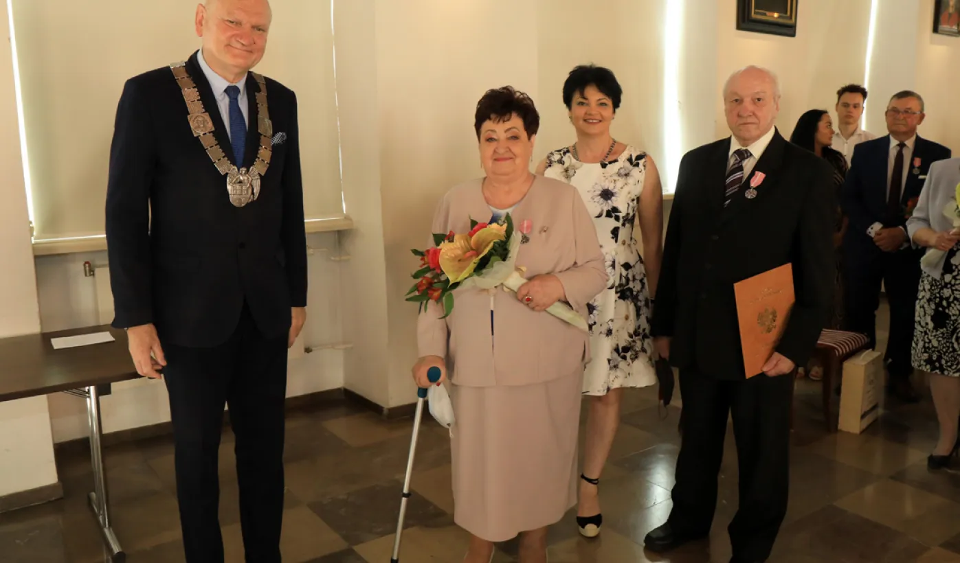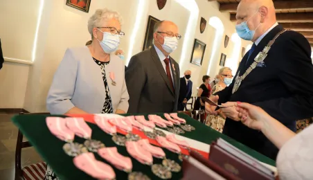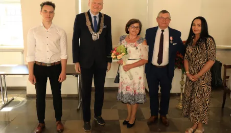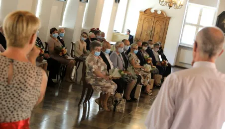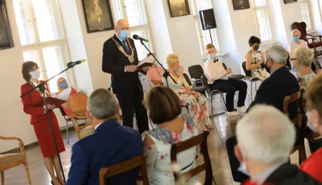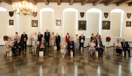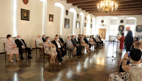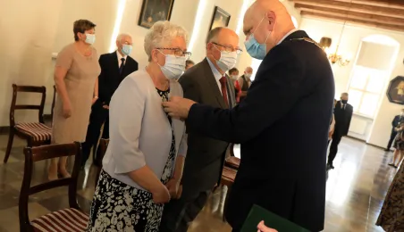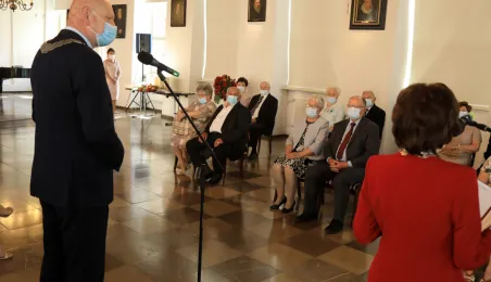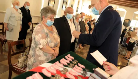 10 par świętujących co najmniej 50-lecie wspólnego życia małżeńskiego odebrało z rąk prezydenta Torunia Michała Zaleskiego Medale za Długoletnie Pożycie Małżeńskie. Uroczystość odbyła się w Ratuszu Staromiejskim w Toruniu. Fot. Sławomir Kowalski