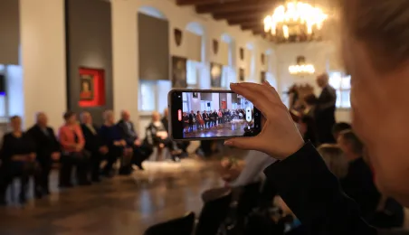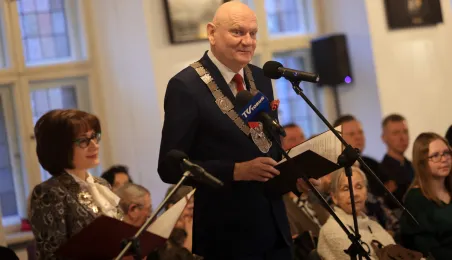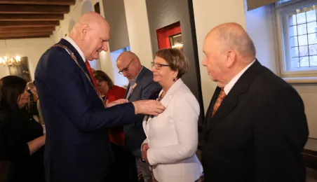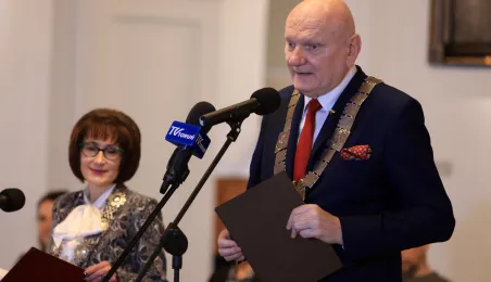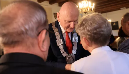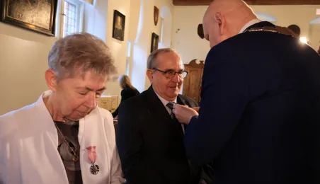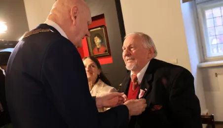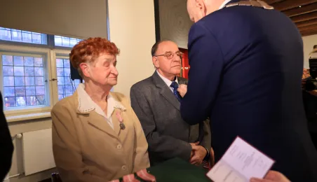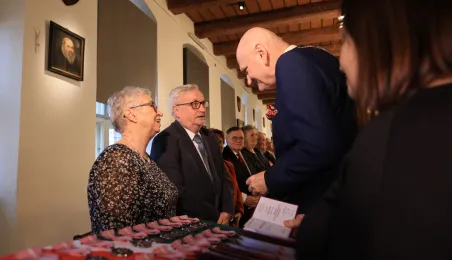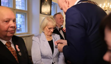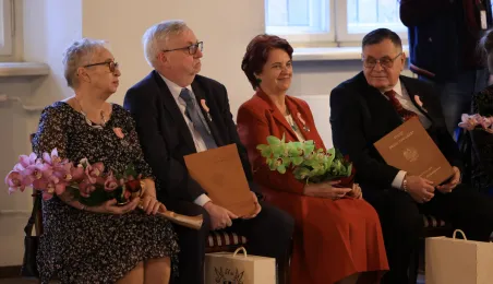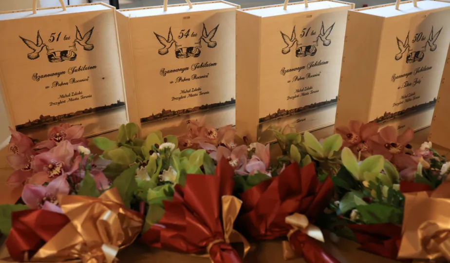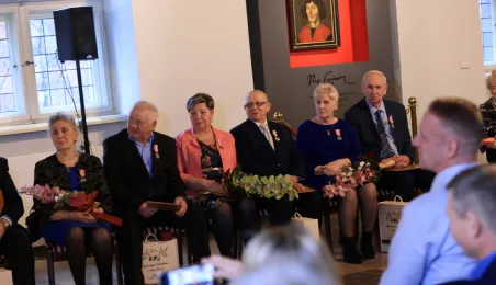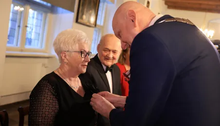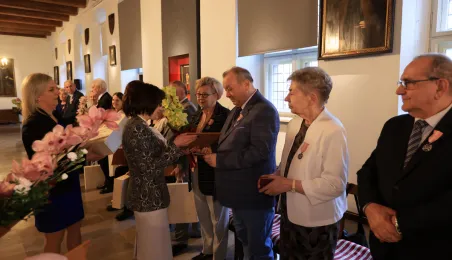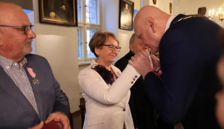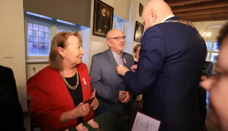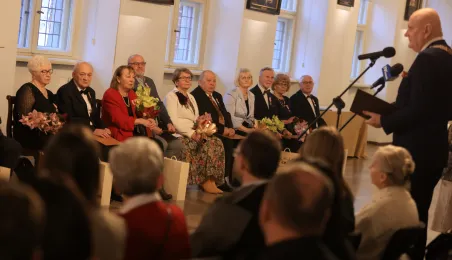 Kolejne toruńskie pary odebrały medale za długie pożycie małżeńskie. 9 lutego 2024 r. w Ratuszu Staromiejskim wręczył je Prezydent Torunia Michał Zaleski. / fot. Sławomir Kowalski