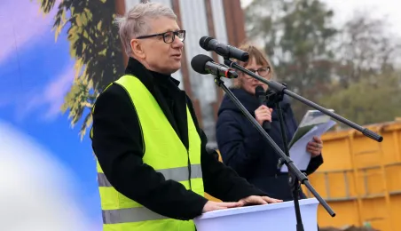 W niedzielę 12 listopada 2023 r. na toruńskich Jordankach wmurowano kamień węgielny pod budowę studia filmowego Europejskiego Centrum Filmowego Camerimage w Toruniu. Fot. Sławomir Kowalski