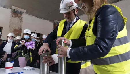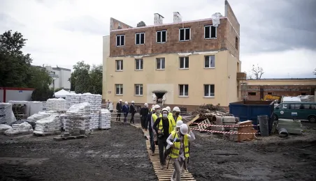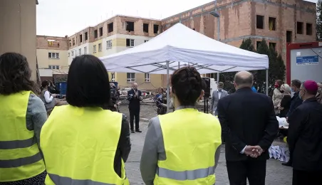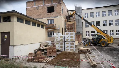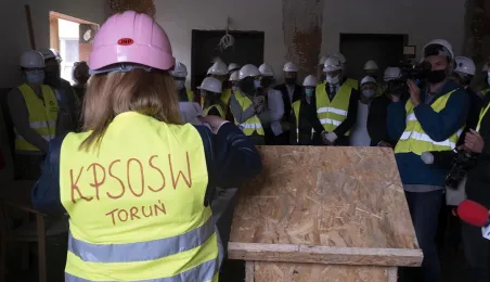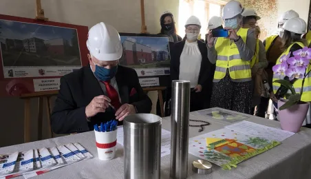 Przy ul. Żwirki i Wigury w Toruniu rozpoczęła się rozbudowa Kujawsko-Pomorskiego Specjalnego Ośrodka Szkolno-Wychowawczego im. Janusza Korczaka. 1 września 2020 r. na terenie placówki podlegającej samorządowi województwa wmurowano kamień węgielny. Gościem uroczystości był zastępca prezydenta Torunia Zbigniew Fiderewicz. Fot. Wojtek Szabelski