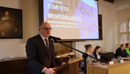 10 marca 2023 r. odbyło się pierwsze posiedzenie Komitetu Monitorującego Fundusze Europejskie dla Kujaw i Pomorza 2021-2027. W gremium, które zatwierdza m.in. zasady, tryb i kryteria wyboru projektów do dofinansowania oraz ewentualne zmiany w programie, zasiadają reprezentanci samorządu województwa i pozostałych struktur samorządu terytorialnego oraz rządu, a także przedstawiciele związków zawodowych, biznesu, środowisk naukowych i organizacji pozarządowych. Gminę Miasta Toruń reprezentował zastępca prezydenta Adrian Mól. Fot. Sławomir Kowalski