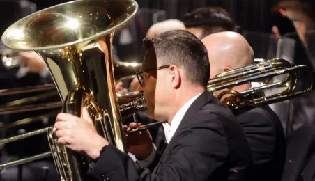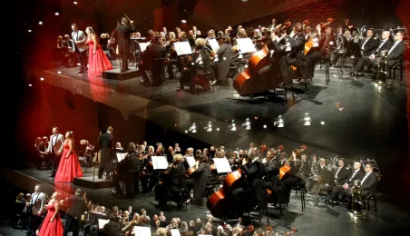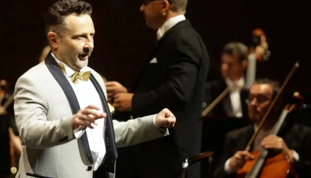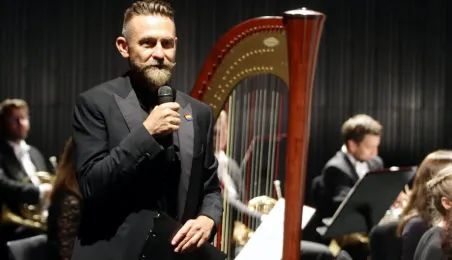 Koncert "Podróż przez świat opery" zwieńczył 5 września 2020 r. Festiwal Nova Muzyka i Architektura. Z towarzyszeniem Toruńskiej Orkiestry Symfonicznej pod dyrekcją Dainiusaa Pavilionisa sławne arie, uwertury i pieśni wykonali Anna Lichorowicz - sopran i Jacek Jaskuła - baryton. Koncert poprowadził Jerzy Snakowski. Fot. Adam Zakrzewski