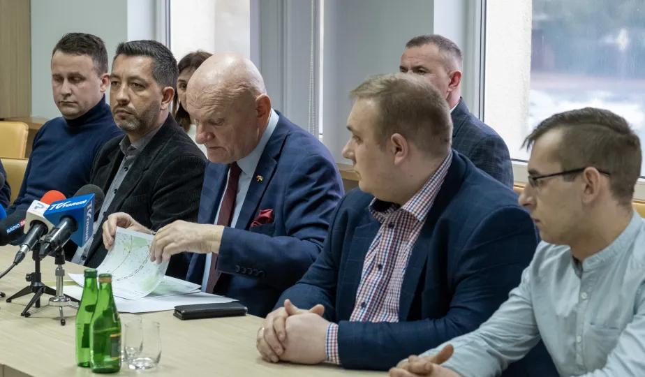 9 lutego 2024 r. odbędzie się portest rolników. W związku z tym w Toruniu i okolicy spodziewane sa utrudnienia w ruchu. O szczegółach na konferencji z organizatorami protestów mówił Prezydent Torunia Michał Zaleski. / fot. Wojtek Szabelski