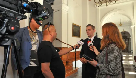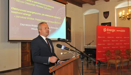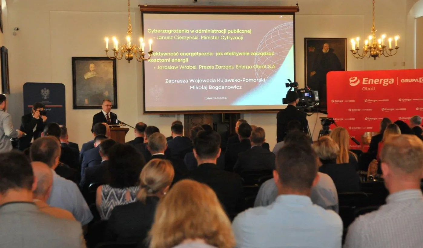 W Ratuszu Staromiejskim 29 maja 2023 r. odbyła się konferencja poświęcona bezpieczeństwu energetycznemu i cyberbezpieczeństwu. Jej gośćmi byli m.in. minister cyfryzacji, Janusz Cieszyński, prezes Rządowego Centrum Legislacji Krzysztof Szczucki, posłanka Jolanta Borowiak i jako gospodarz spotkania - wojewoda Mikołaj Bogdanowicz. W imieniu miasta gości powitał prezydent Michał Zaleski. Fot. Małgorzata Litwin