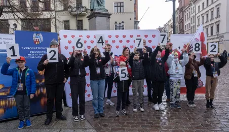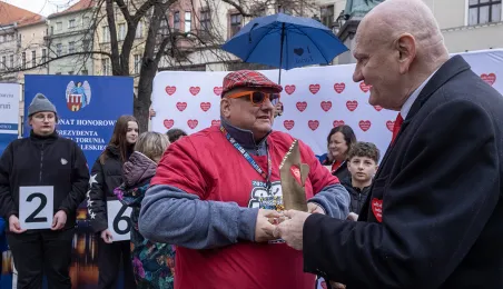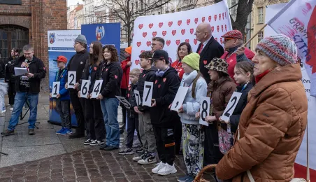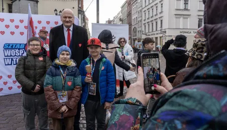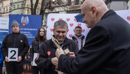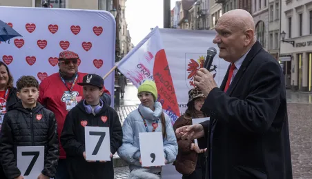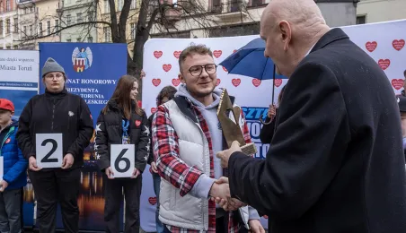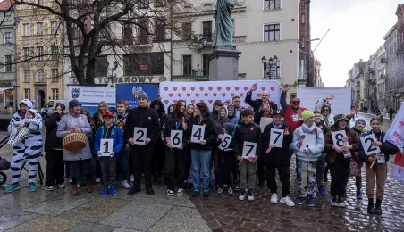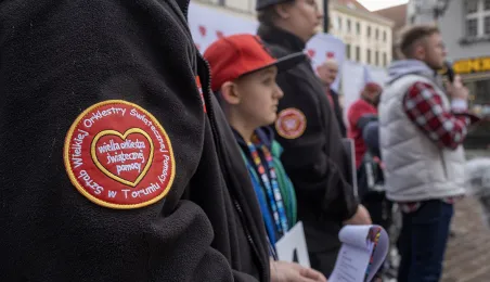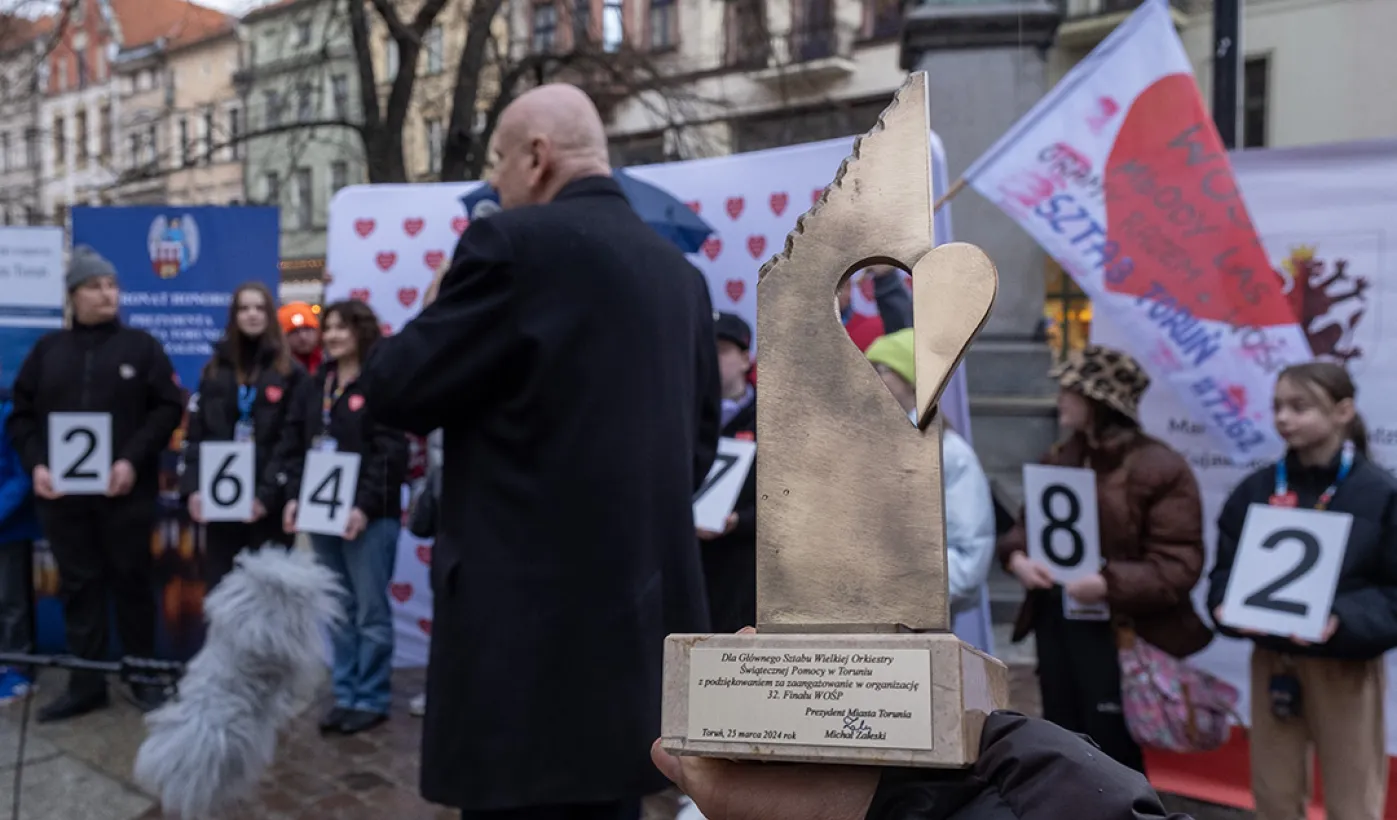 25 marca 2024 r. przed pomnikiem Mikołaja Kopernika odbyła się konferencja prasowa podsumowująca 32. Finał Wielkiej Orkiestry Świątecznej Pomocy. / fot. Wojtek Szabelski