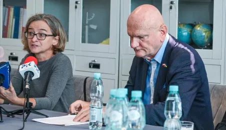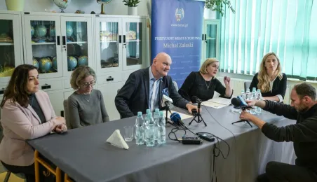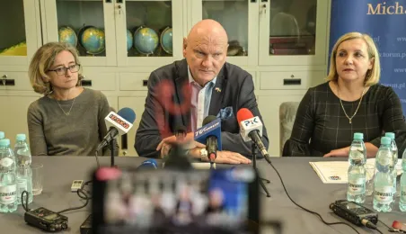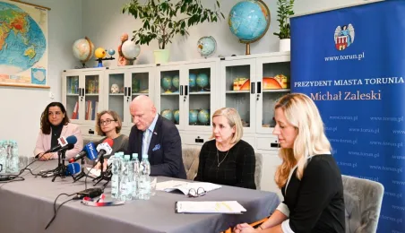 W 10 toruńskich szkołach jest realizowany projekt badawczy pn. „Diagnoza dobrostanu społecznego i psychicznego toruńskiej młodzieży po okresie edukacji zdalnej”, finansowany ze środków budżetu miasta. Informacje nt. projektu przekazał prezydent Michał Zaleski podczas konferencji prasowej w dn. 2 listopada 2022 r. Fot. Lech Kamiński