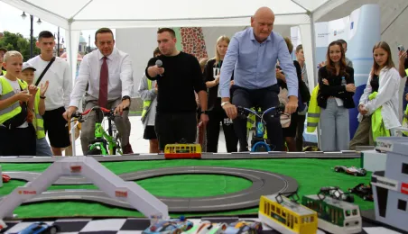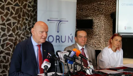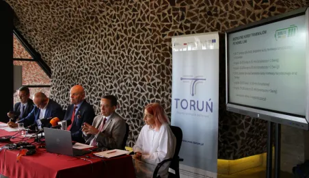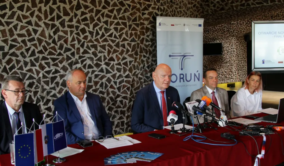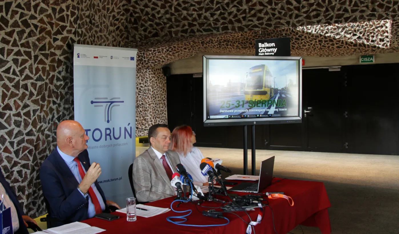 10 sierpnia 2023 roku odbyła się konferencja zapowiadająca uroczyste otwarcie nowej linii tramwajowej w Toruniu. Festyn BiT-City odbędzie się 25 sierpnia 2023 roku. W spotkaniu z mediami wziął udział Prezydent Torunia Michał Zaleski. / fot. Paula Gałązka