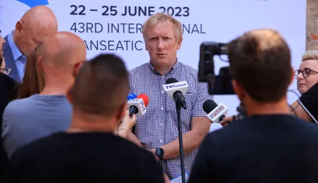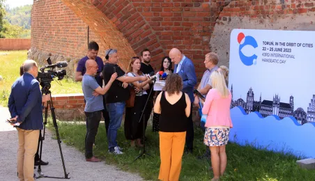 W dniach 22-25 czerwca 2023 roku Toruń będzie organizatorem 43. Międzynarodowego Zjazdu Miast Nowej Hanzy. 7 czerwca 2023 roku na Zamku Krzyżackim odbyła się konferencja prasowa zapowiadająca to wydarzenie. / fot. Sławomir Kowalski