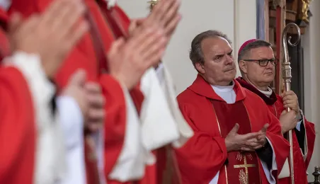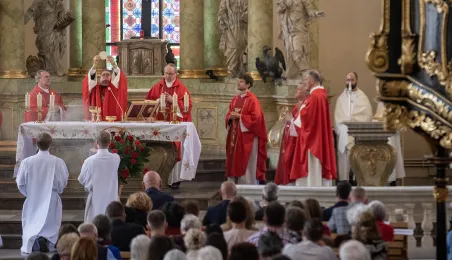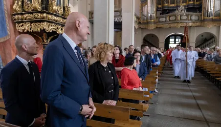 Konsekracja kościoła odbyła się w niedzielę 28 maja 2023 r. Ceremonii przewodniczył biskup Wiesław Śmigiel. W uroczystości wziął udział prezydent Torunia Michał Zaleski. Fot. Wojtek Szabelski