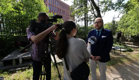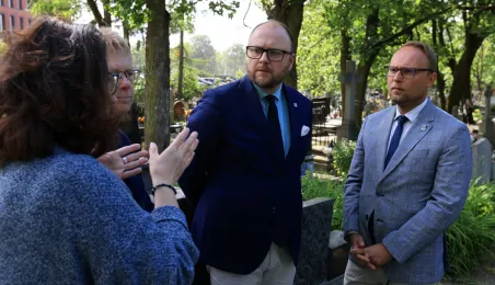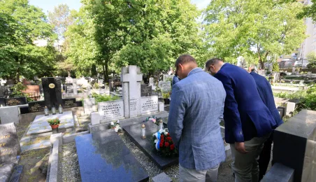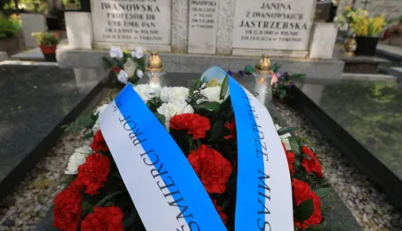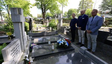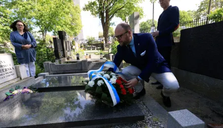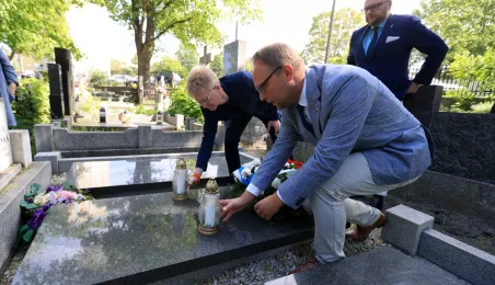 16 maja 2024 r. władze miasta złożyły kwiaty na grobie Honorowej Obywatelki Torunia prof. Wilhelminy Iwanowskiej, która pochowana jest na cmentarzu św. Jerzego przy ul. Gałczyńskiego. Fot. Sławomir Kowalski
