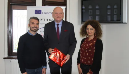 W Toruniu trwa podsumowanie dwuletniego projektu "Let's MYTH together", realizowanego w ramach programu Erasmus +. W środę 15 maja 2019 r. nauczyciele spotkali się z prezydentem Torunia Michałem Zaleskim.
