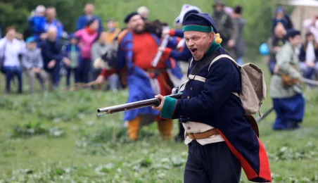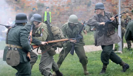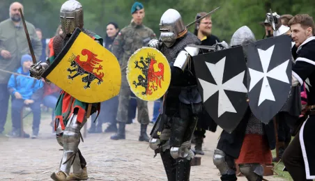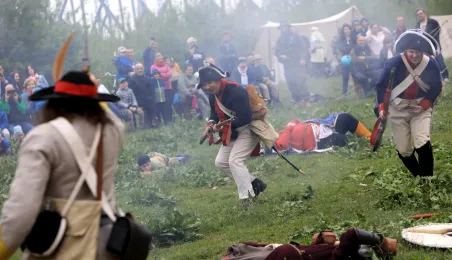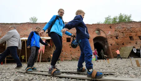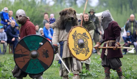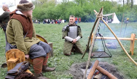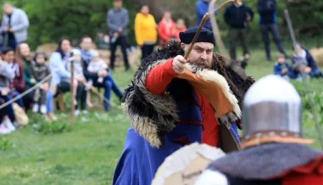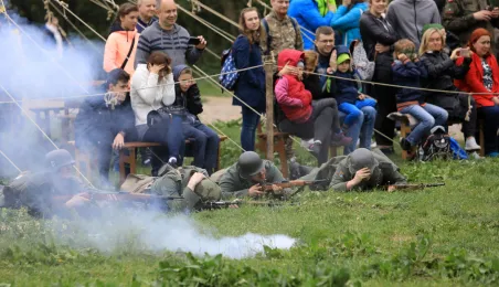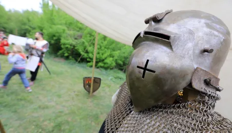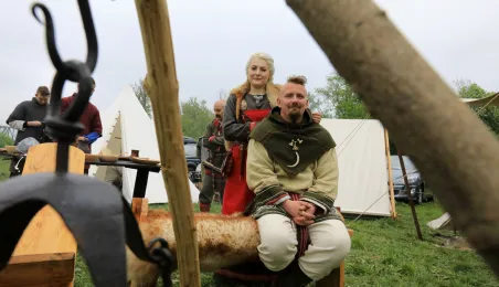 W dniu 27 kwietnia 2019 roku na Zamku Dybowskim odbyła się "Majówka z historią". Na uczestników wydarzenia czekało wiele atrakcji, m.in. Wielobój historyczny, pokazy uzbrojenia, ekwipunku, Bitwa Wieków itp. Fot. Sławomir Kowalski