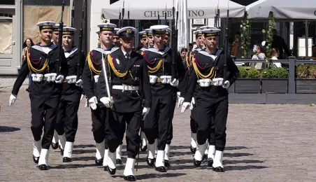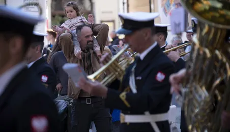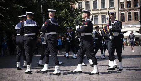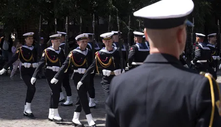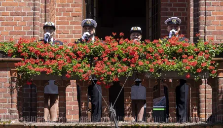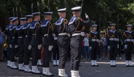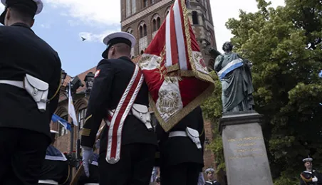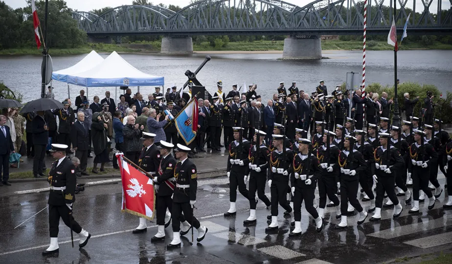 21 czerwca 2022 r.W 2022 r. mija 100 lat od utworzenia Oficerskiej Szkoła Marynarki Wojennej w Toruniu. Uroczystości z tej okazji odbyły się w kościele garnizonowym, na Bulwarze Filadelfijskim oraz na Rynku Staromiejskim w Toruniu, gdzie marynarze z Akademii Marynarki Wojennej w Gdyni - kontynuatorki tradycji szkoły toruńskiej - zaprezentowali się mieszkańcom i turystom w pokazach musztry paradnej. Po zakończeniu ceremonii wojskowej z Rynku Staromiejskiego wyruszył rajd rowerowy, którego uczestnicy pokonają 200 km do Gdyni. Fot. Wojtek Szabelski