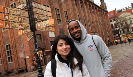 Od 25 marca do 1 kwietnia 2023 r. w Toruniu rozgrywane są 9. Halowe Mistrzostwa Świata w Lekkoatletyce Masters z udziałem ponad 4000 zawodników z całego świata. Na ulicach miasta mozna spotkać grupy gości z 88 krajów. Fot. Sławomir Kowalski