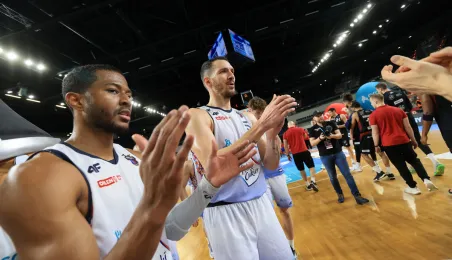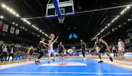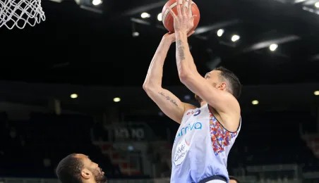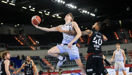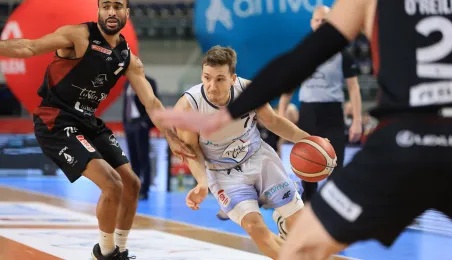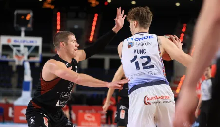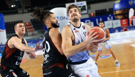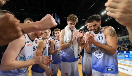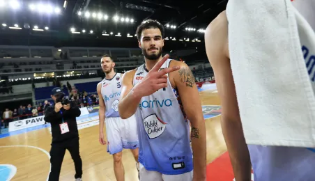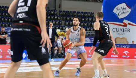 W meczu koszykarskich drużyn Arriva Polski Cukier Toruń - MKS Start S.A. Lublin, który odbył się 4 stycznia 2024 r. w Arenie Toruń, torunianie zwyciężyli 98:84. Fot. Sławomir Kowalski
