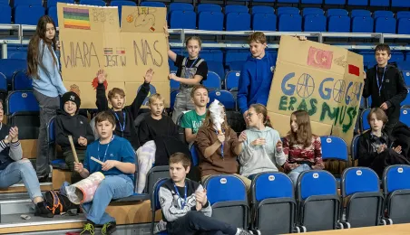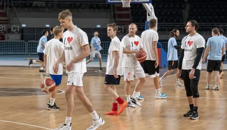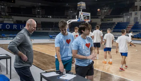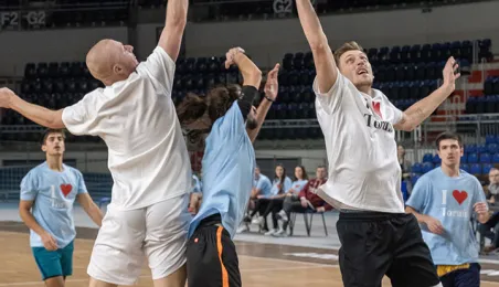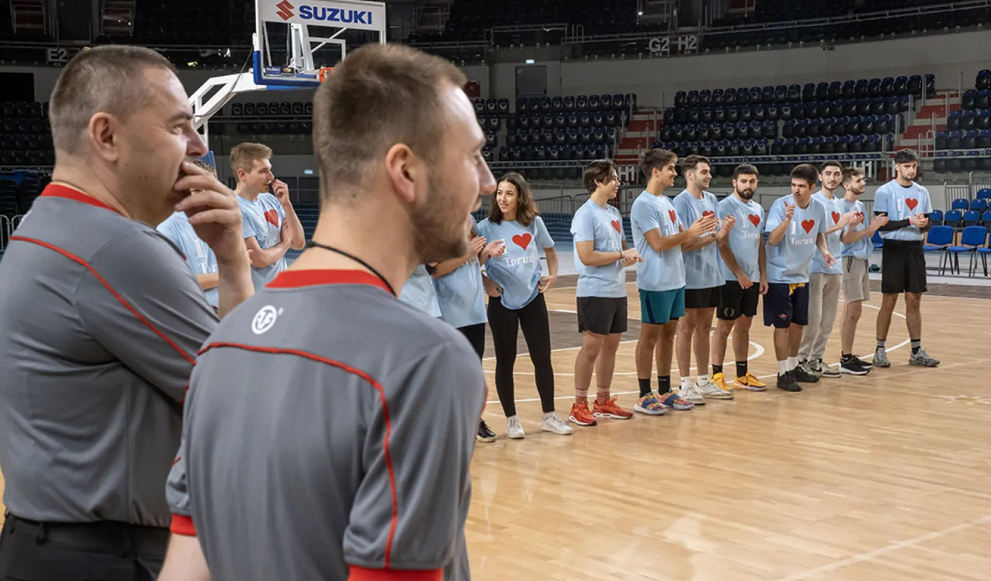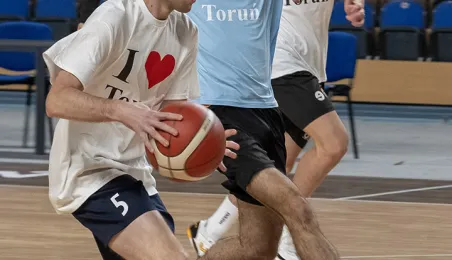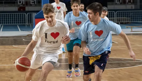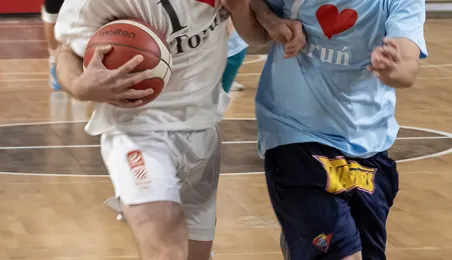 Studenci i studentki UMK, studenci Erasmus, zawodnicy AZS-u UMK oraz toruńscy sportowcy rozegrali 16 listopada 2023 r. w Arenie Toruń mecz koszykówki w ramach Toruńskiego Tygodnia Tolerancji. Fot. Wojtek Szabelski