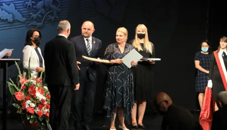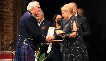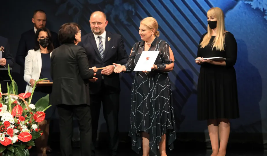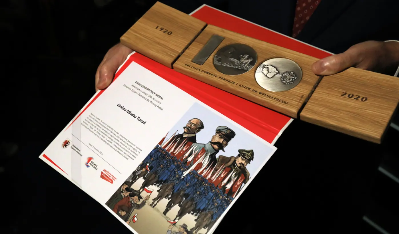1 września 2021 r. medalami zostali uhonorowani organizatorzy wydarzeń okolicznościowych upamiętniających stulecie przyłączenia Pomorza i Kujaw do wolnej Polski oraz podmioty zasłużone w krzewieniu pamięci o tamtych wydarzeniach. Wśród wyróżnionych znalazła się Gmina Miasta Toruń – medal odebrał z rąk marszałka województwa kujawsko-pomorskiego Piotra Całbeckiego prezydent Michał Zaleski. Wydarzenie odbyło się w teatrze im. Wilama Horzycy. Fot. Sławomir Kowalski