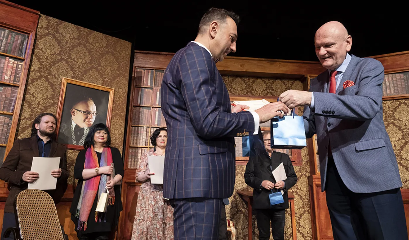 23 marca 2019 r. przed spektaklem "Jaś i Małgosia" w teatrze Baj Pomorski odbyło się wreczenie nagród dla czworga pracowników teatru oraz listów gratulacyjnych dla dyrektorów teatrów, instytucji oraz placówek oświatowych, prowadzących zajęcia teatralne.