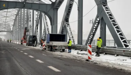 Pomimo mrozu, dziś 11 grudnia 2021 od samego rana ekipy elektryków montują na moście drogowym im. marsz. J. Piłsudskiego oprawy do iluminacji mostu. Jest to bardzo precyzyjna praca, ponieważ do każdego naświetlacza trzeba podłączyć po dwa kable i kable zasilające. W sumie na toruńskiej przeprawie zostanie zamontowanych 360 opraw, które podkreślą i wydobędą architektoniczne piękno naszej przeprawy.