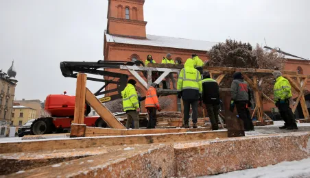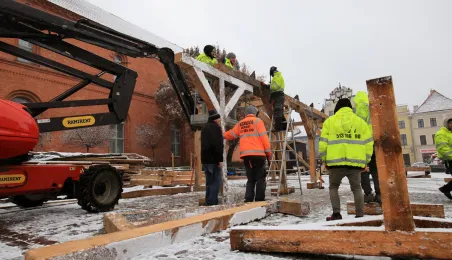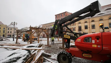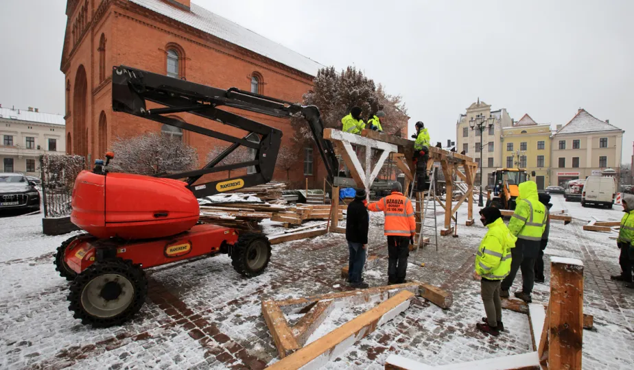 W tym roku Szopka Bożonarodzeniowa otwarta będzie od 15 grudnia 2022 roku do 6 stycznia 2023 roku. Na Rynku Nowomiejskim trwa właśnie montaż obiektu. / fot. Sławomir Kowalski
