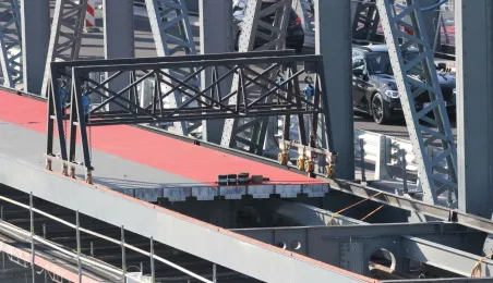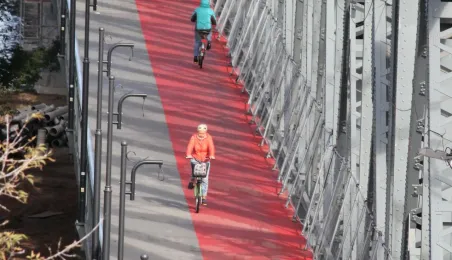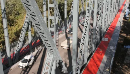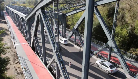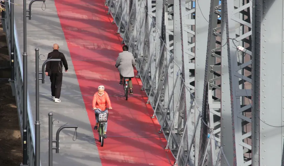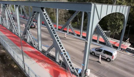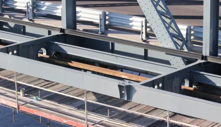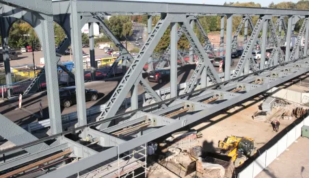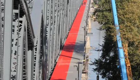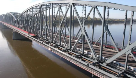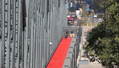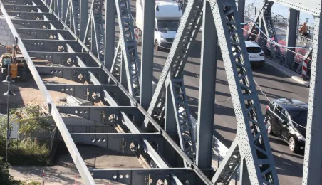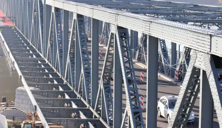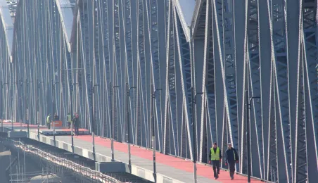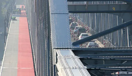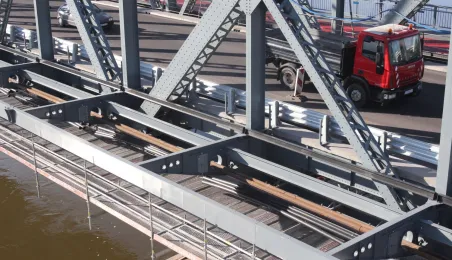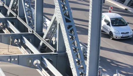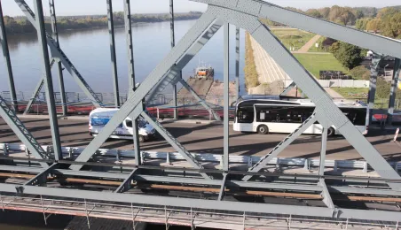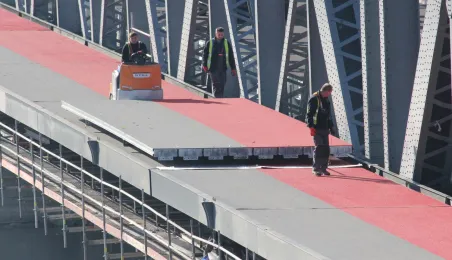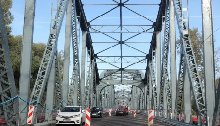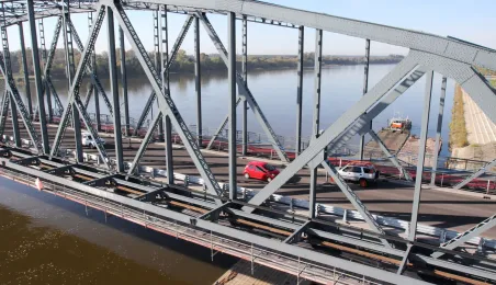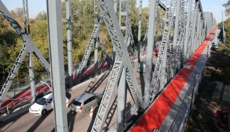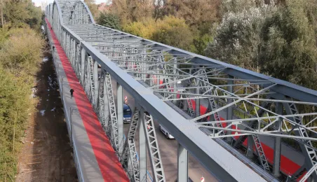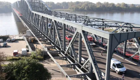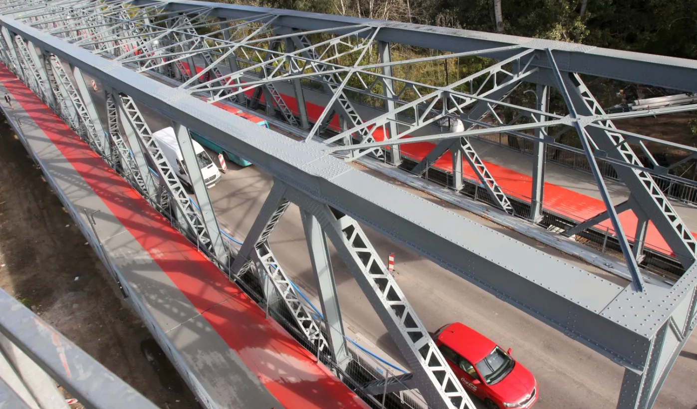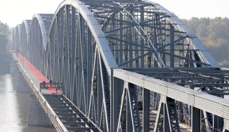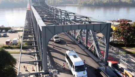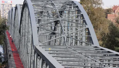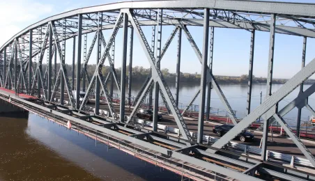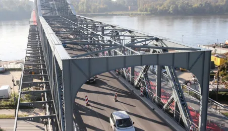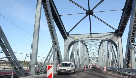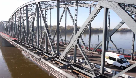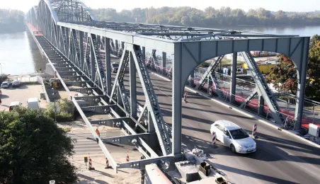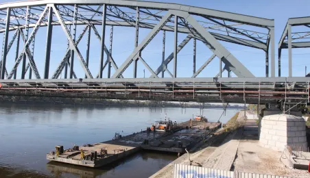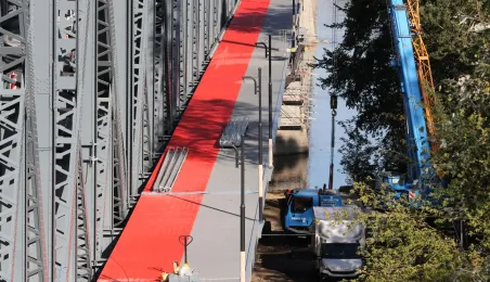 Trwają prace na moście drogowym im. Józefa Piłsudskiego - w pażdzierniku 2021 r. montowany jest ciąg pieszo-rowerowy od strony starówki. Fot. Adam Zakrzewski